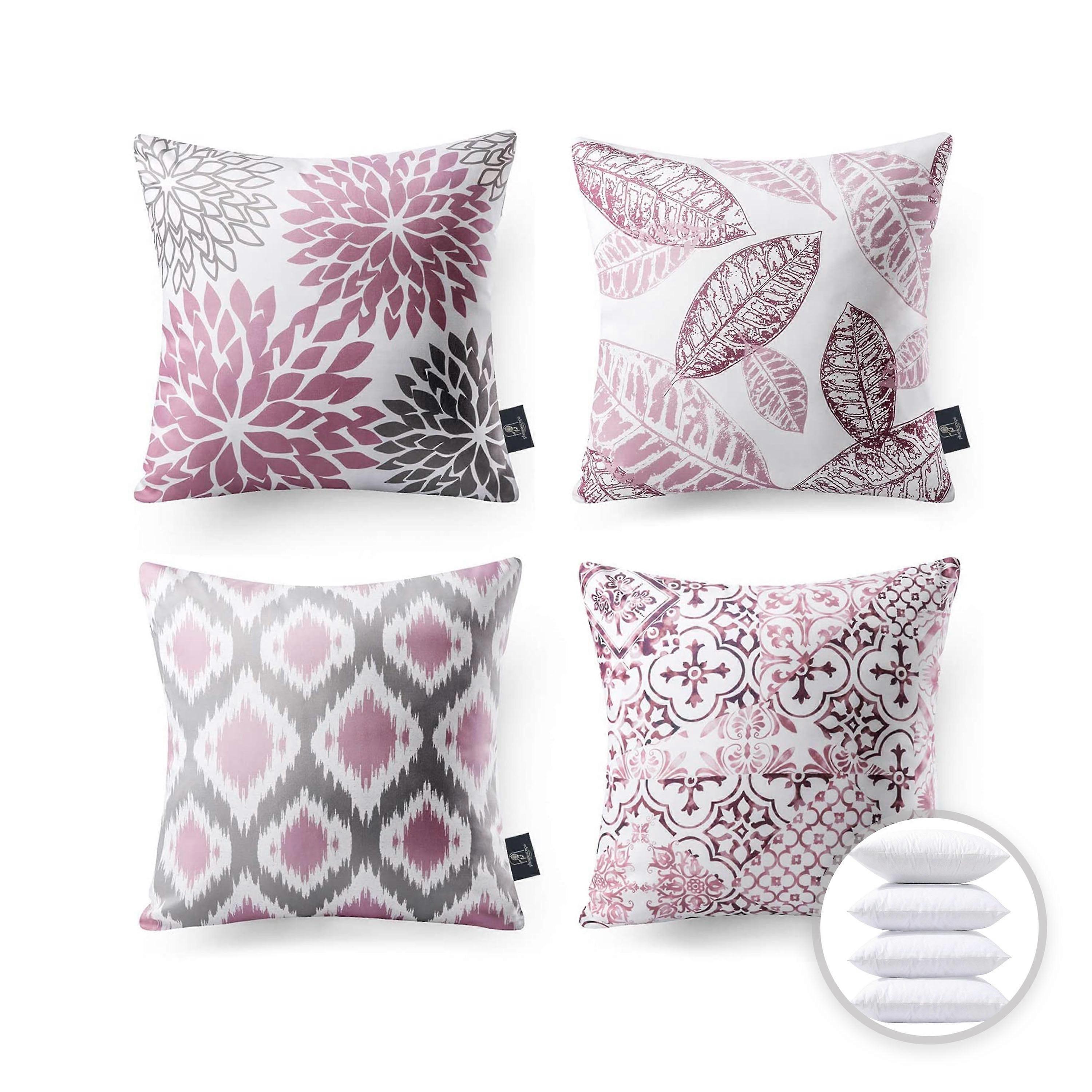 Phantoscope New Living Series Duplex Printing Decorative Throw Pillow, 18" x 18", Blue and Orange, Set of 4