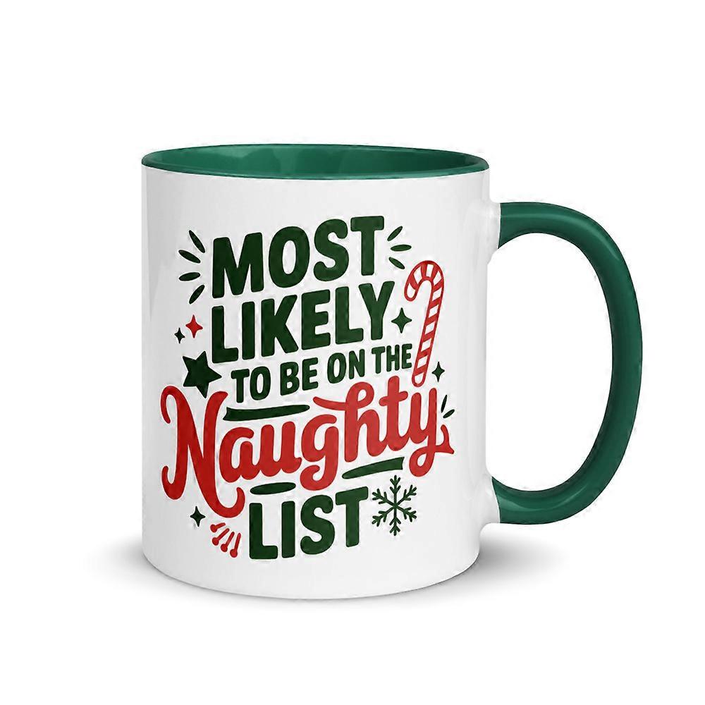 Family Matching Xmas Mug with Color Inside, Most Likely To Be On The Naughty List - Christmas Present (Dark Green, 11 oz)