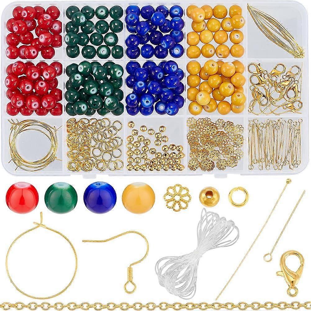 1 Box 200Pcs 8mm Glass Beads Bulk Kit for Jewelry Making, DIY Bracelets, Earrings, Necklaces, Crafts - Red, Blue, Green, Gold Compatible with DIY