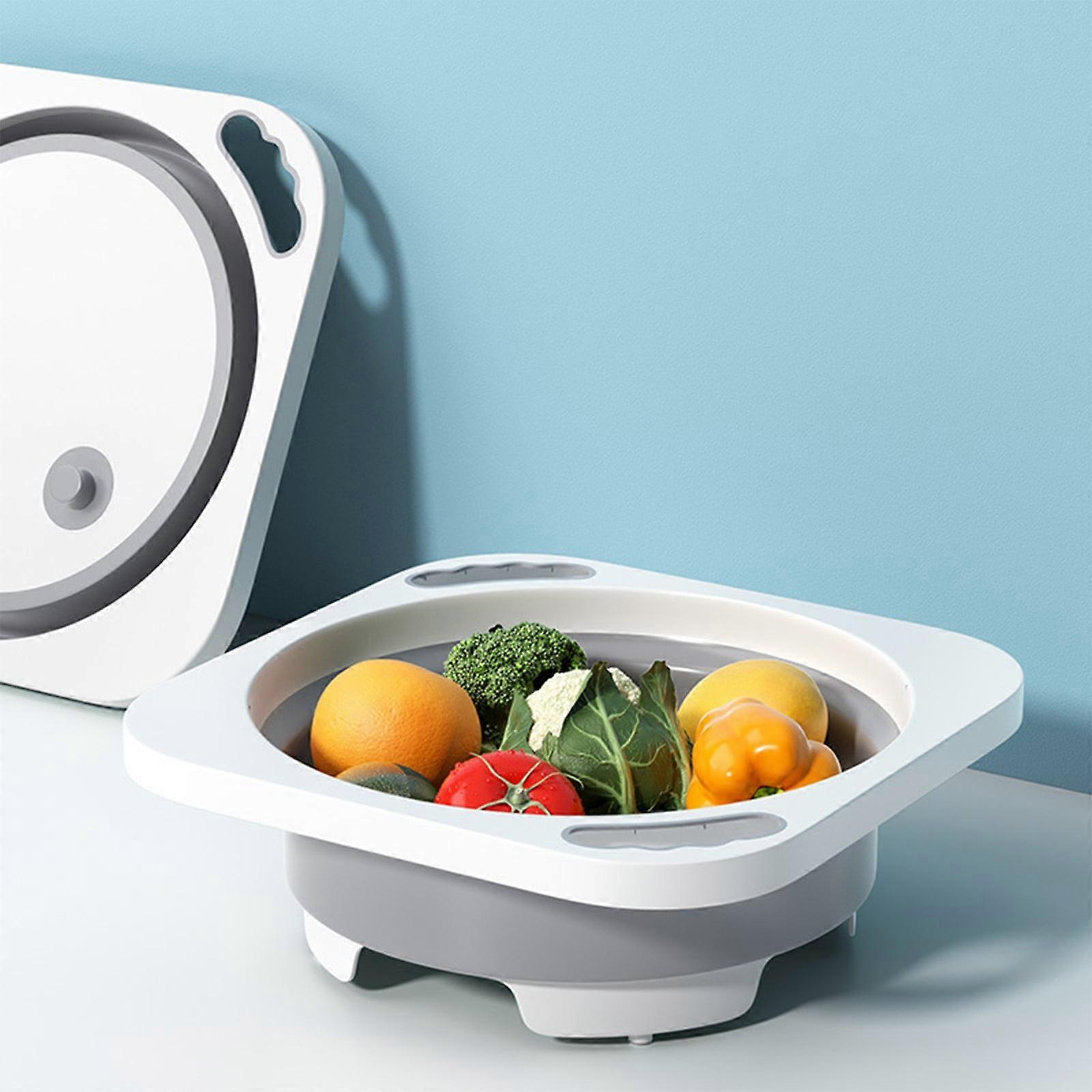 Kitchen Storage & Organization Clearance Foldable Washbasin Multifunctional Cutting Board Household Portable Fruit Washing and Draining Basket