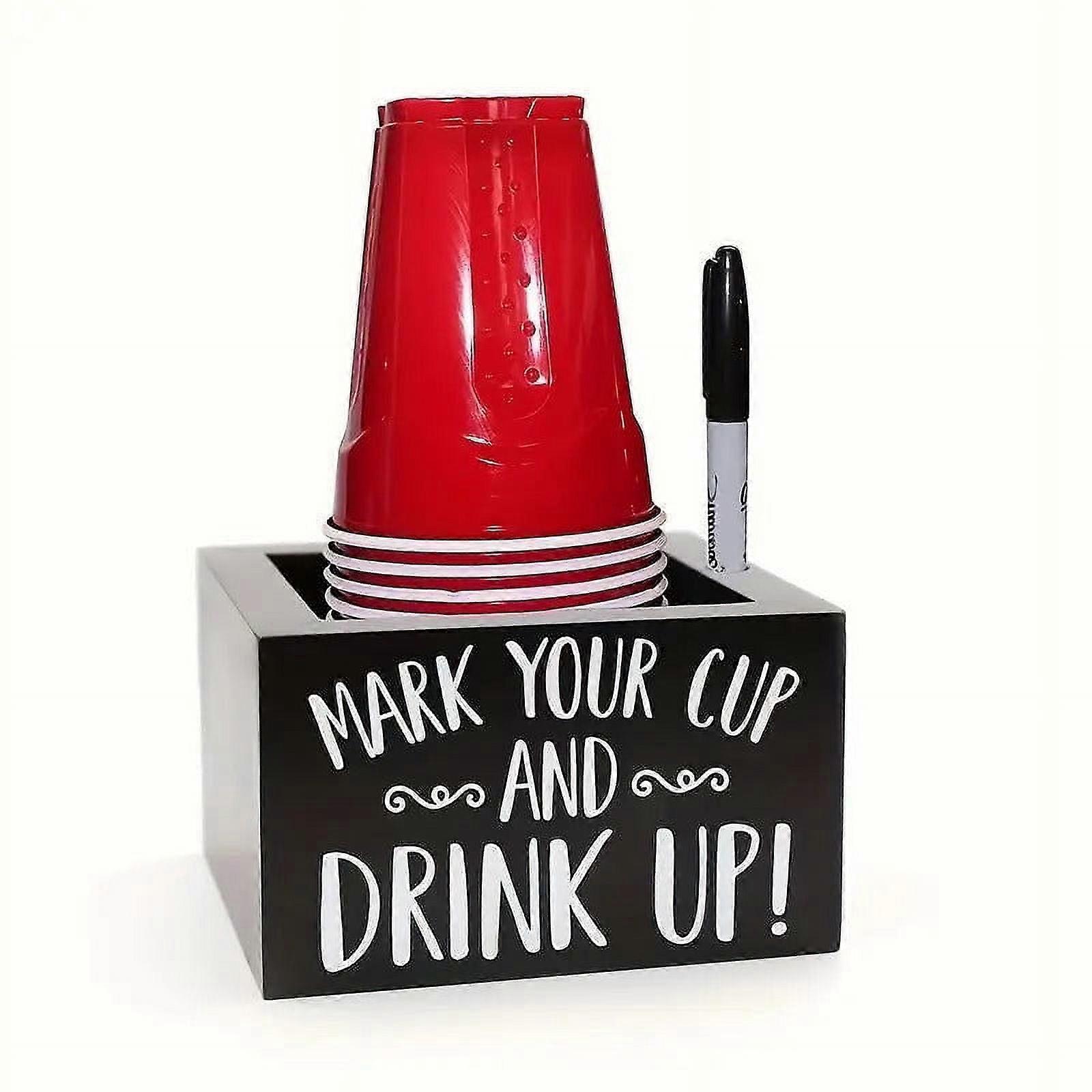 Luckky Disposable Cup Holder with Marker Slot, Wooden Mark Your Cup Dispenser, 2-Side Design for Parties, Bar, Christmas & Housewarming Decor