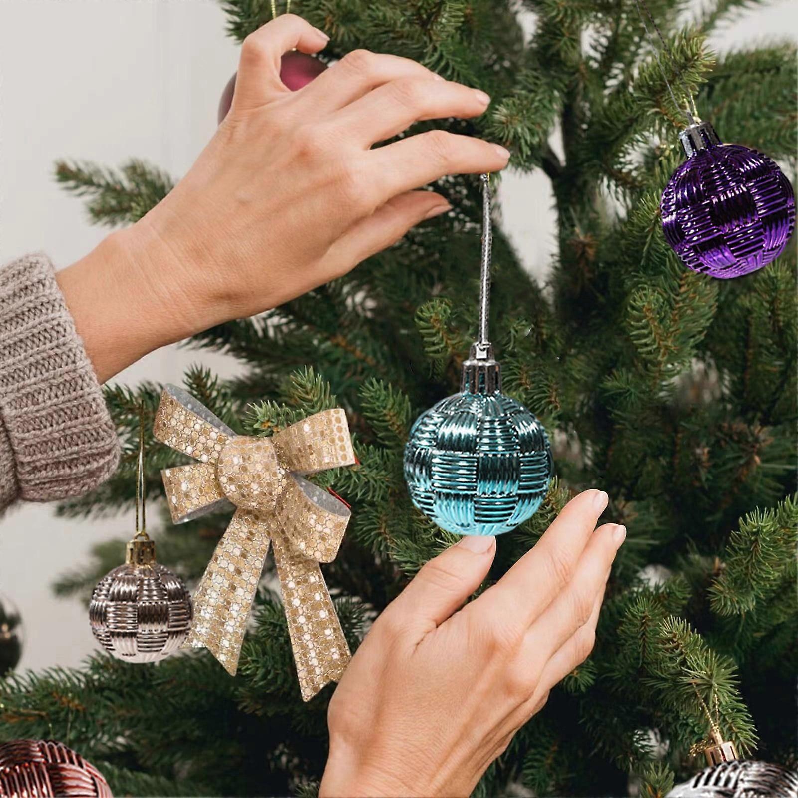SUSUchens 6Pcs 4CM Christmas Balls, Colorful Glossy Braided Shatterproof Plastic Ornaments Compatible with Xmas Trees, Reusable Holiday Decorations