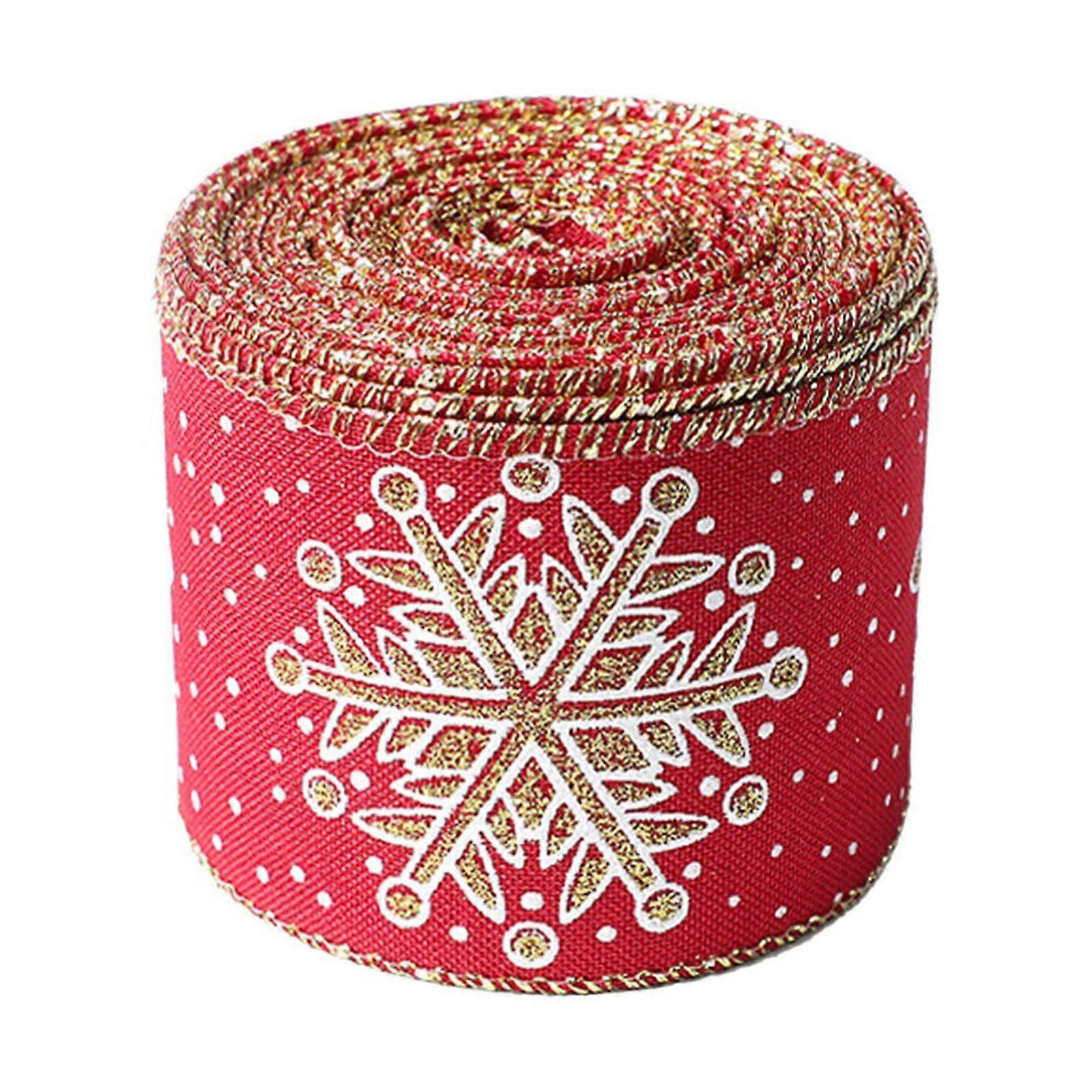 Christmas Ribbon 10yd Snowflake Print, Compatible with Christmas Tree Decorations, Gift Packaging, Polyester Craft Ribbon