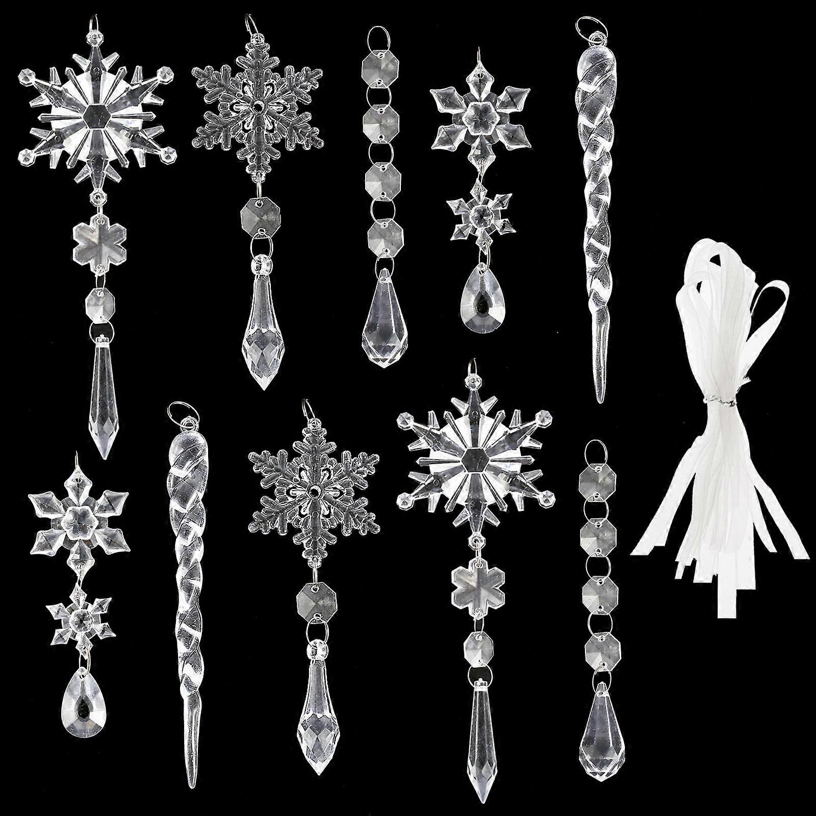 Christmas Tree Decorations Acrylic Snowflake Ornaments, Hanging Icicle Drop Crystal Xmas Decor for Holiday Party Compatible with Wekvgz