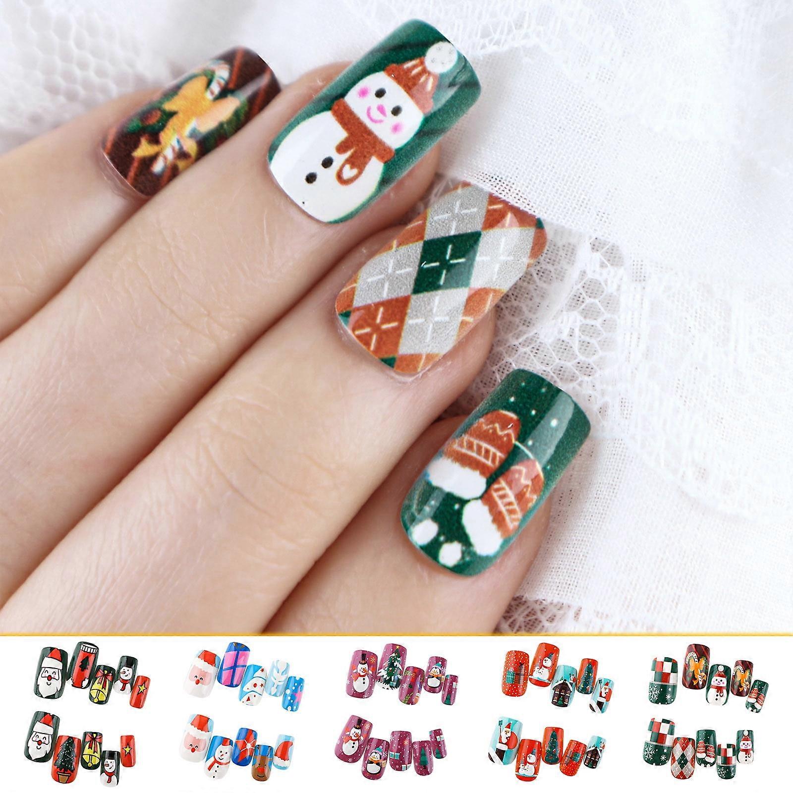 Fankiway Christmas Nails Kiss Christmas Nails, Christmas Wearing Snowflake Santa Claus Box With Fake Nails 24 /box