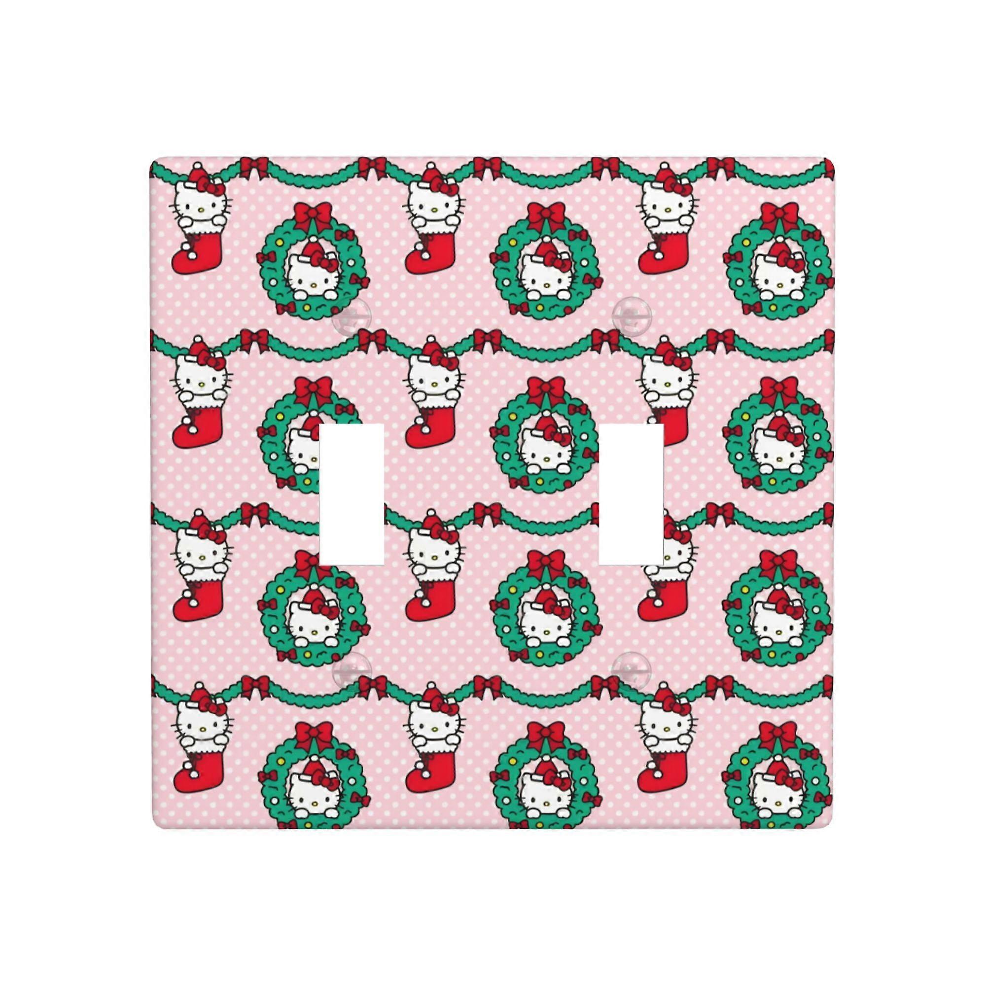Hello Kitty Christmas print 4.5x4.5" wall switch cover, PC material, compatible with standard US toggle switches, for home bedroom kitchen decor