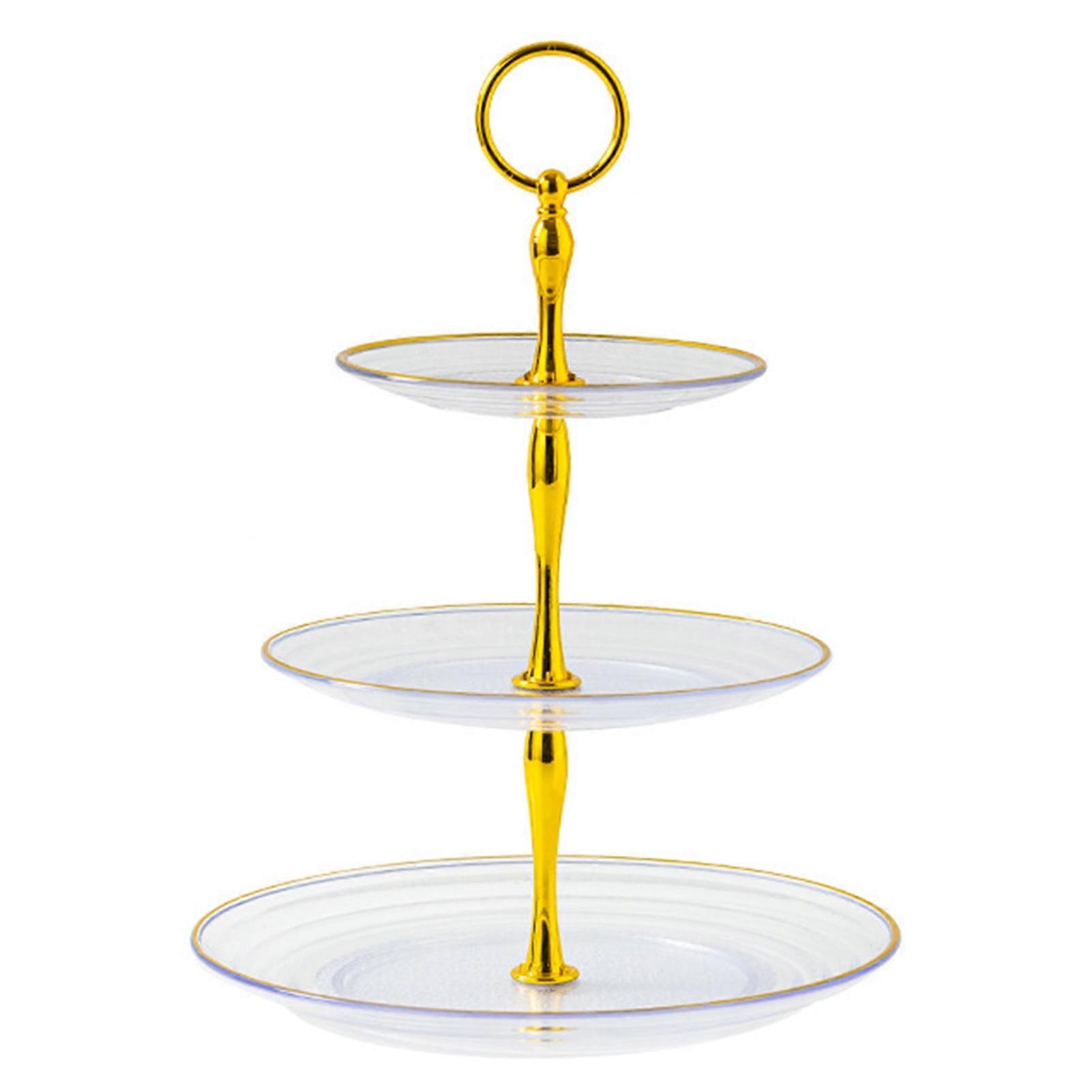 3 Tier Cupcake Stand Holder - Golden Edged Plastic Dessert Tower with Metal Rod - Compatible with Party Supplies - Baby Shower, Wedding, Birthday