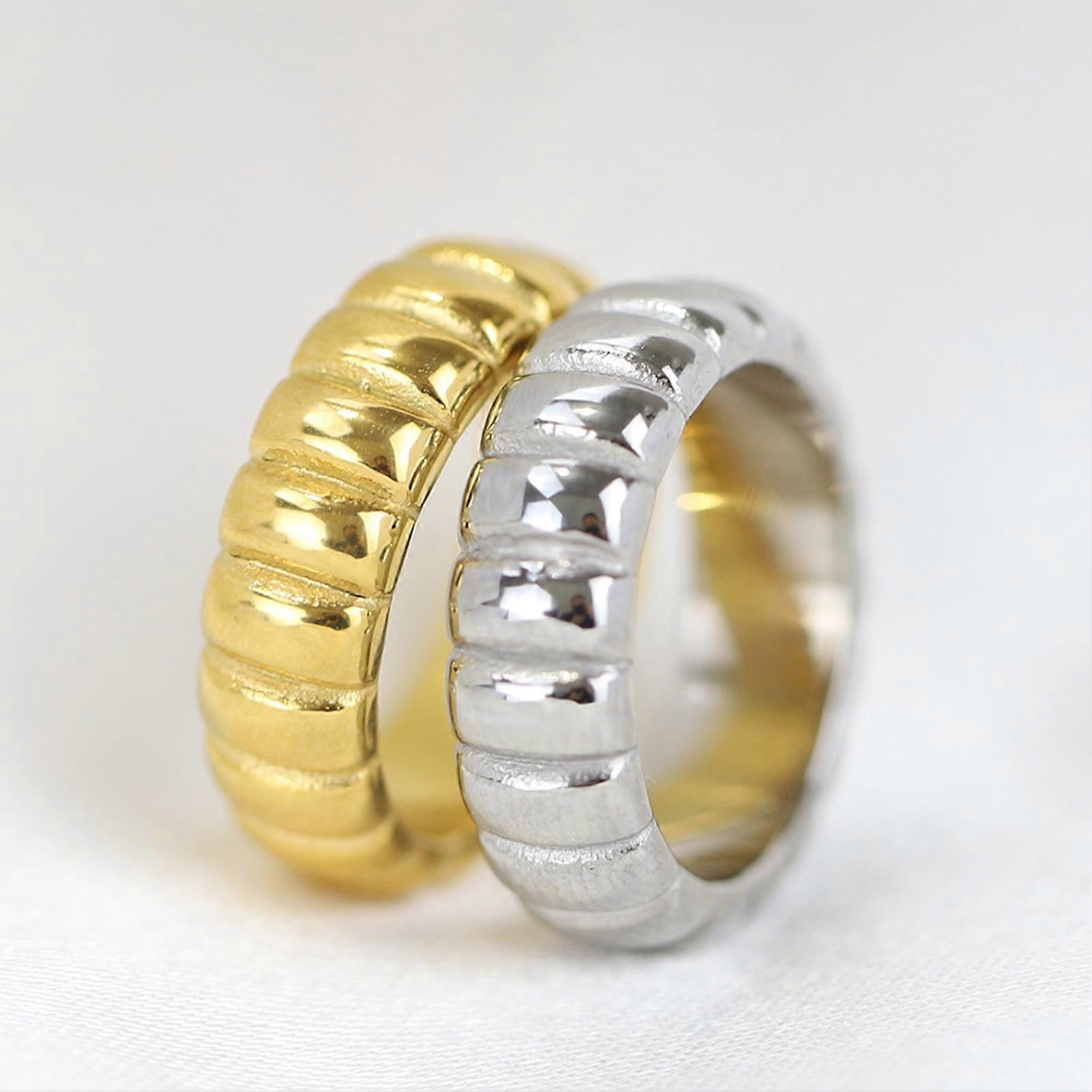 Hesroicy Finger Band Raised Grain Geometric Electroplating Bright Luster Charming Dress Up Colorfast Titanium Steel Punk Ring Women Jewelry