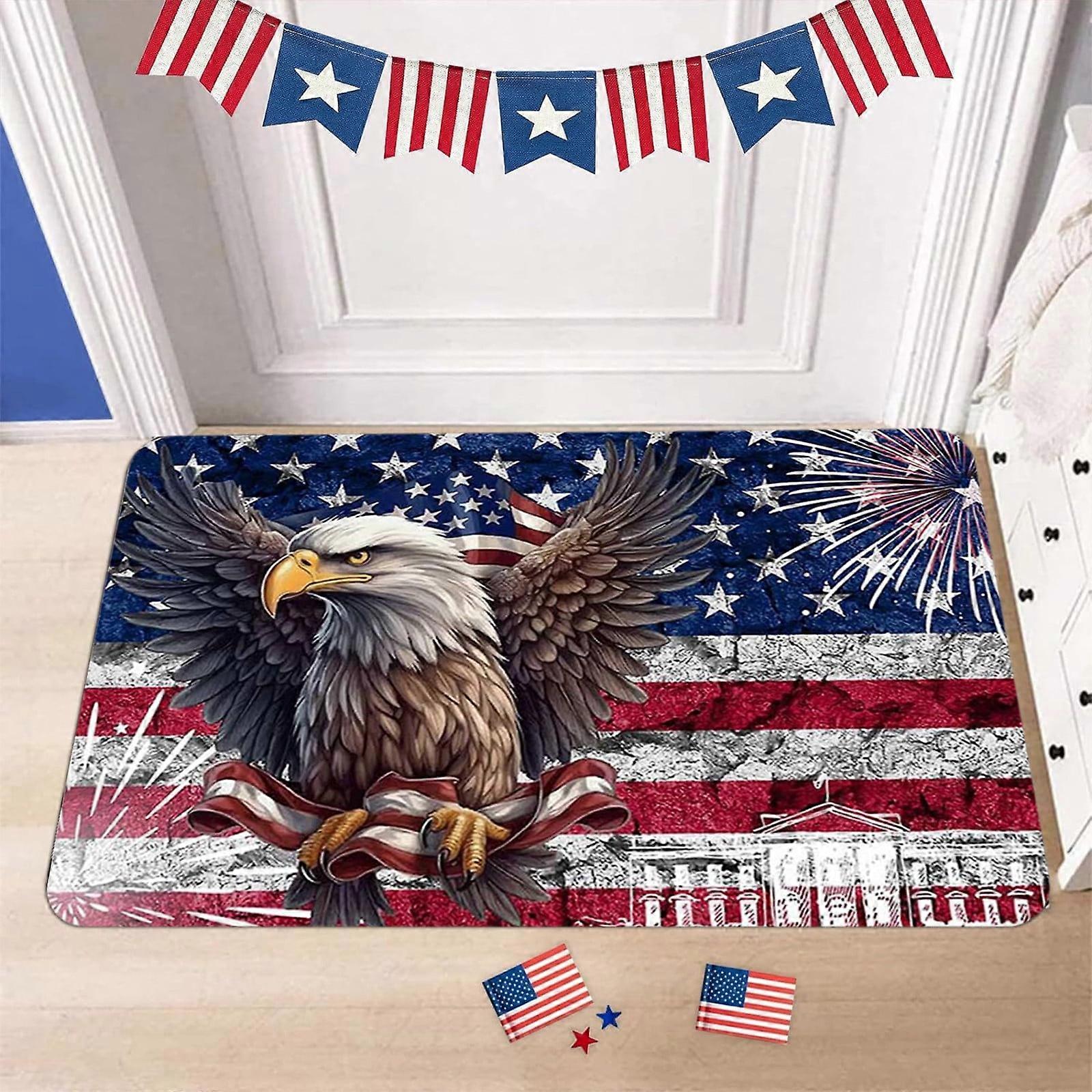 Patriotic Welcome Doormat Retro American Flag Design with Slip-Resistant Rubber, Vintage Linen Floor Mat for 4th of July Decor