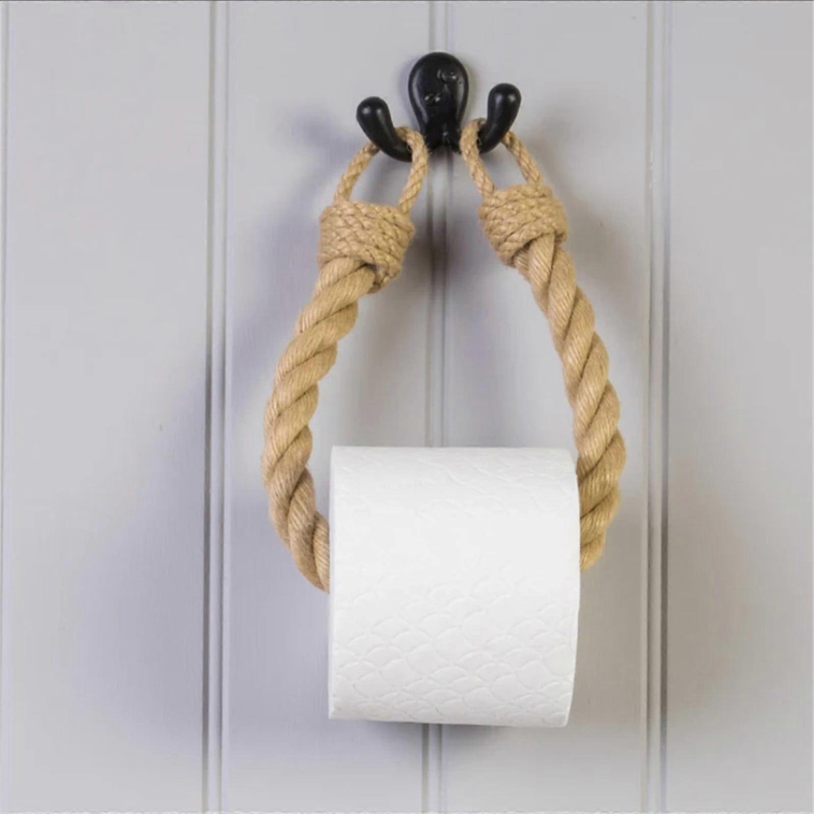 Jute Rope Toilet Paper Holder, Towel Ring & Wall-Mounted Rack, Vintage Ocean Beach Bathroom Decor for DIY Home