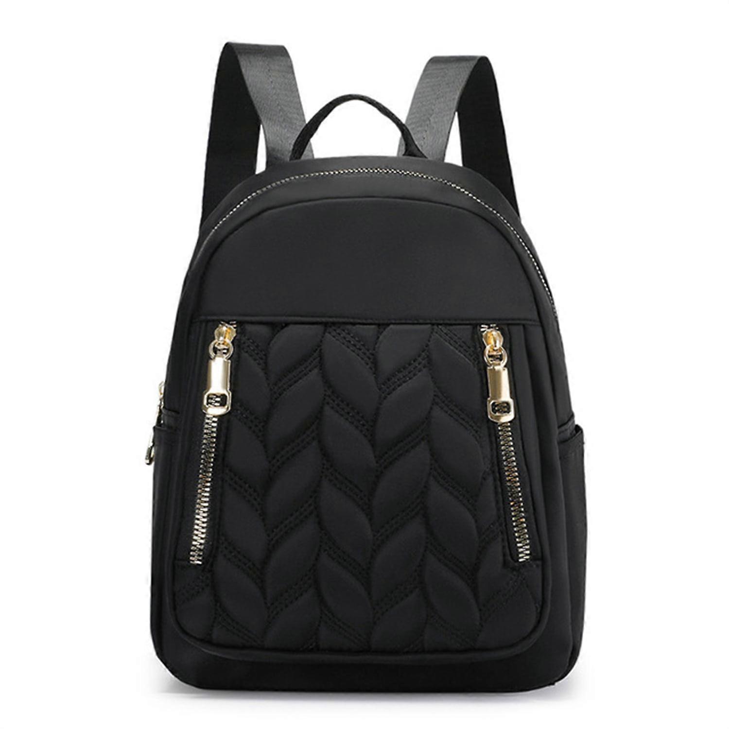 Simple Casual Backpack Women Backpack Urban Trend Travel Solid Color Nylon Bag Waterproof Lightweight Ladies Bag(Black)