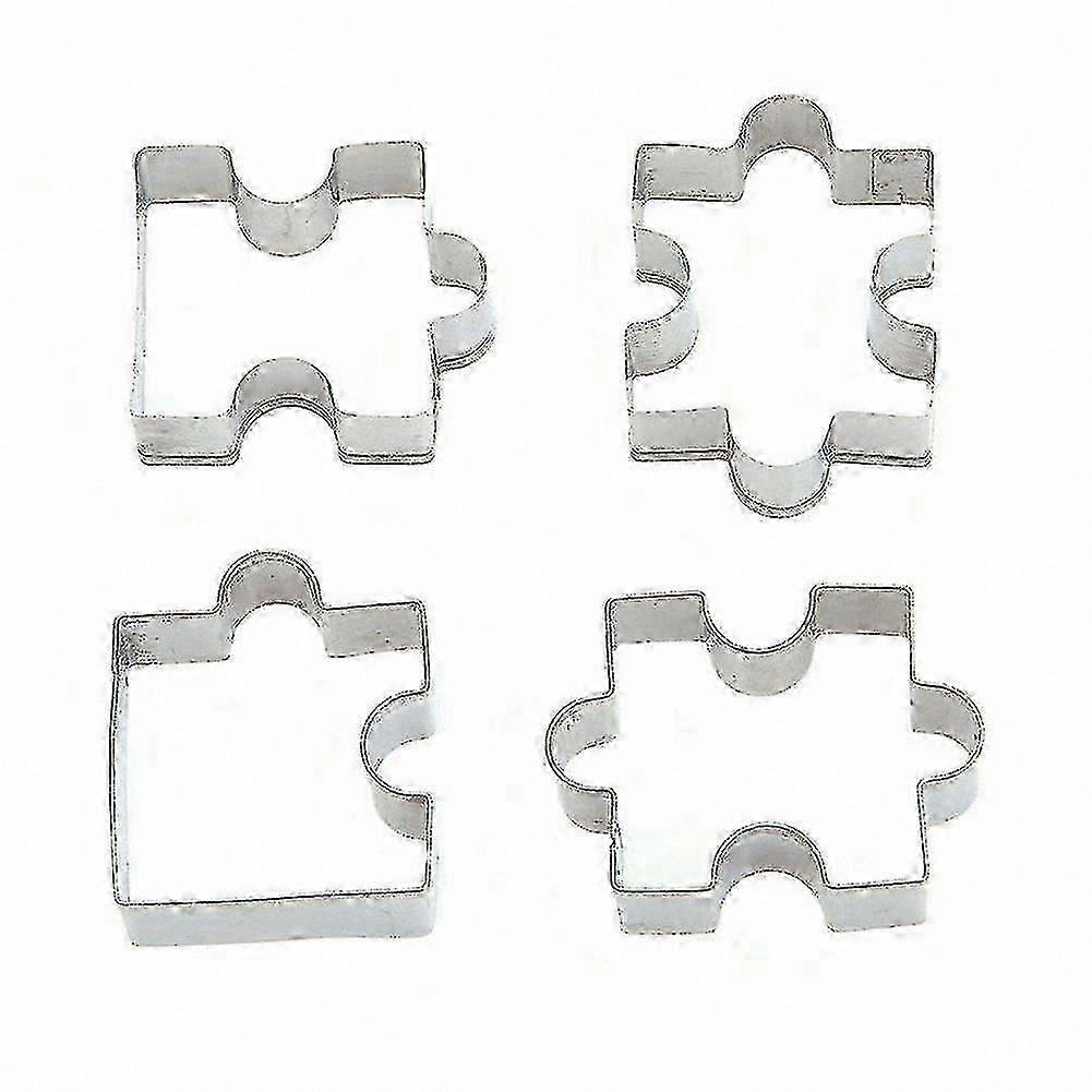 4-Piece Stainless Steel Cookie Cutter Set for Fondant, Biscuits, and Cake Decorating Puzzle Mold Silver Finish