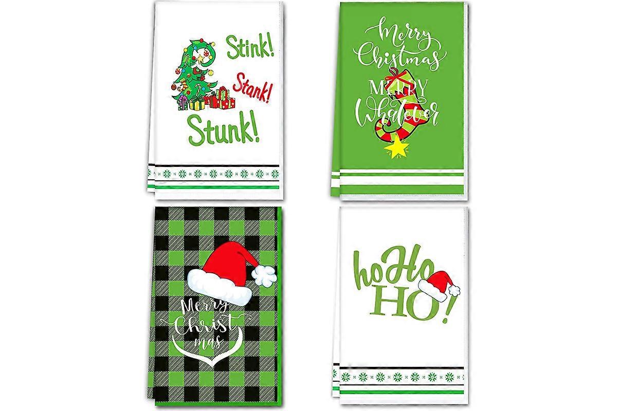 4Pcs Christmas Kitchen Towels Grinch Hand Inspirited Decorative