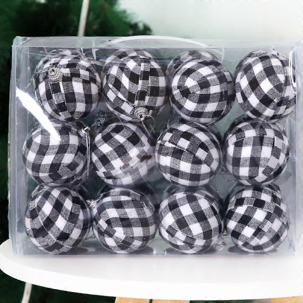 24Pcs Christmas Mini Plaid Ball Ornaments, Buffalo Plaid Fabric Xmas Balls 2.8" for Tree Decor, Party Hanging Ornament, White & Black