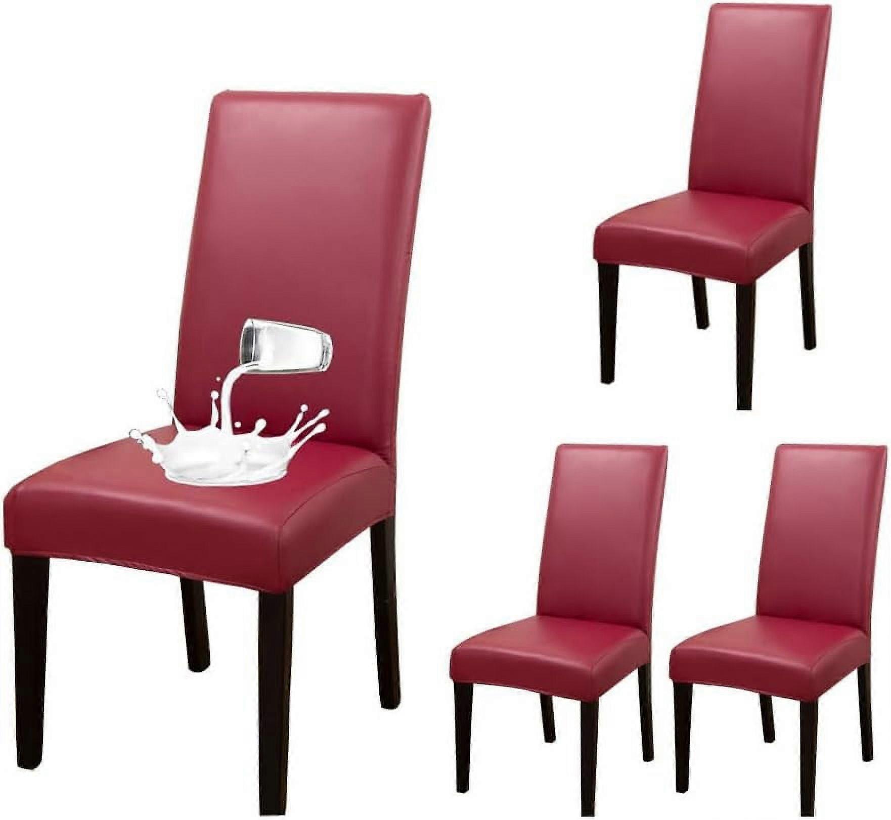 Dining Chair Covers Set of 4, Waterproof PU Leather Chair Slipcovers,Removable Washable Kitchen Table Seat Covers Protector (Red)