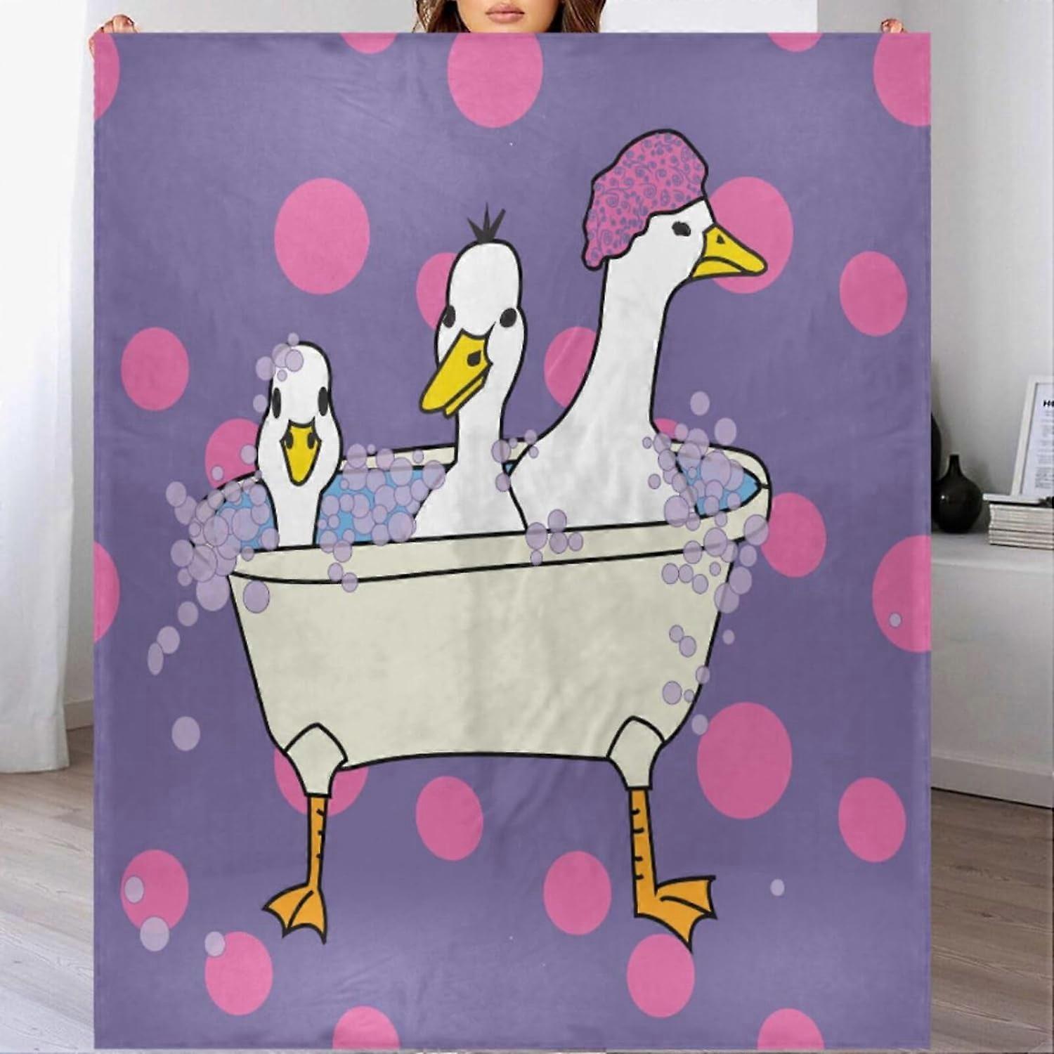 Throw Blanket for Couch 50x60 Inches, Ducks Bathing Print, Soft Cozy Flannel Fleece, Purple Pink Dots, Lightweight Warm Fuzzy Blanket for Bed Sofa