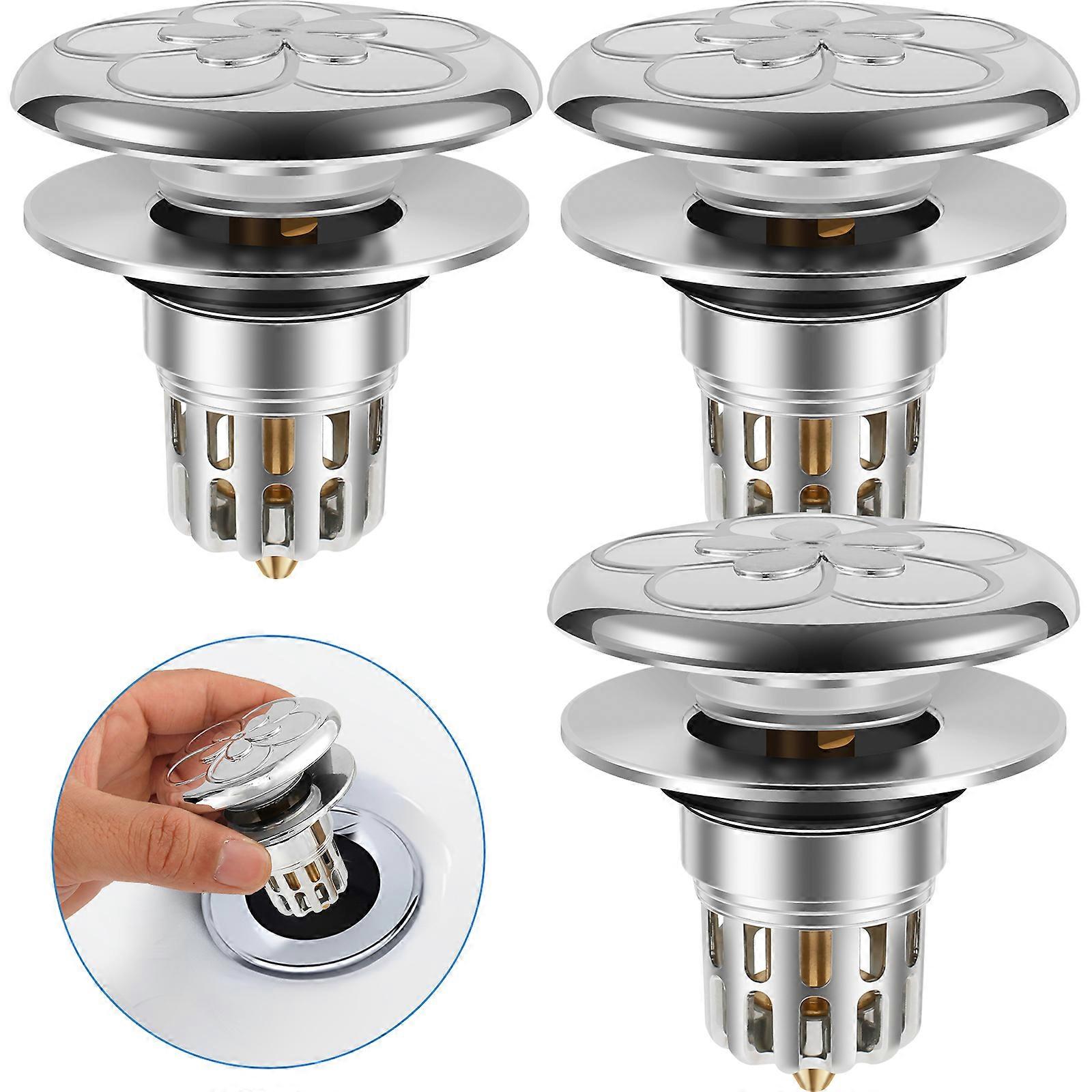 FUYGRCJ 3Pcs Bathroom Sink Stopper compatible with 34-40mm Drain Holes, Pop Up Sink Drain Strainer, Removable Stainless Steel Basin Plug