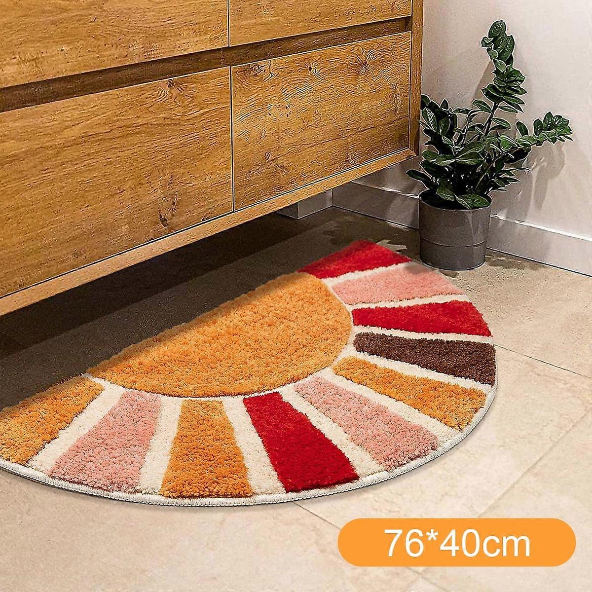Qenwkxz Boho Half Round Door Mat Colorful Boho Rug for Bath Tub Non-Slip Cute Rainbow Rug for Kids' Room Washable Circular Carpet for Bedroom Dorm