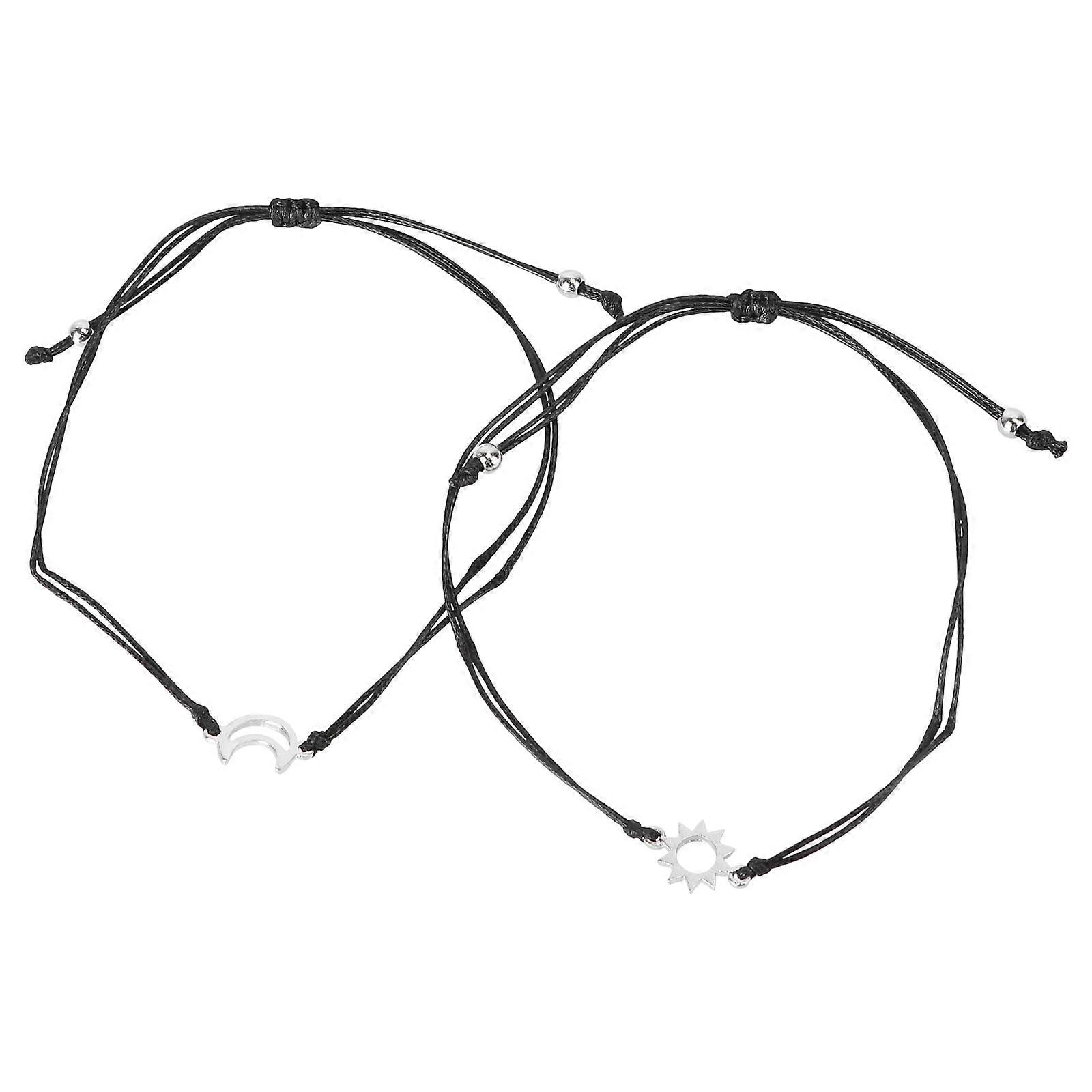 2 Pcs/Set Black Bracelet for Women Woven Sun Moon Boyfriend Trendy Jewelry Braid Braided Friendship Distance Bracelets s Lovers