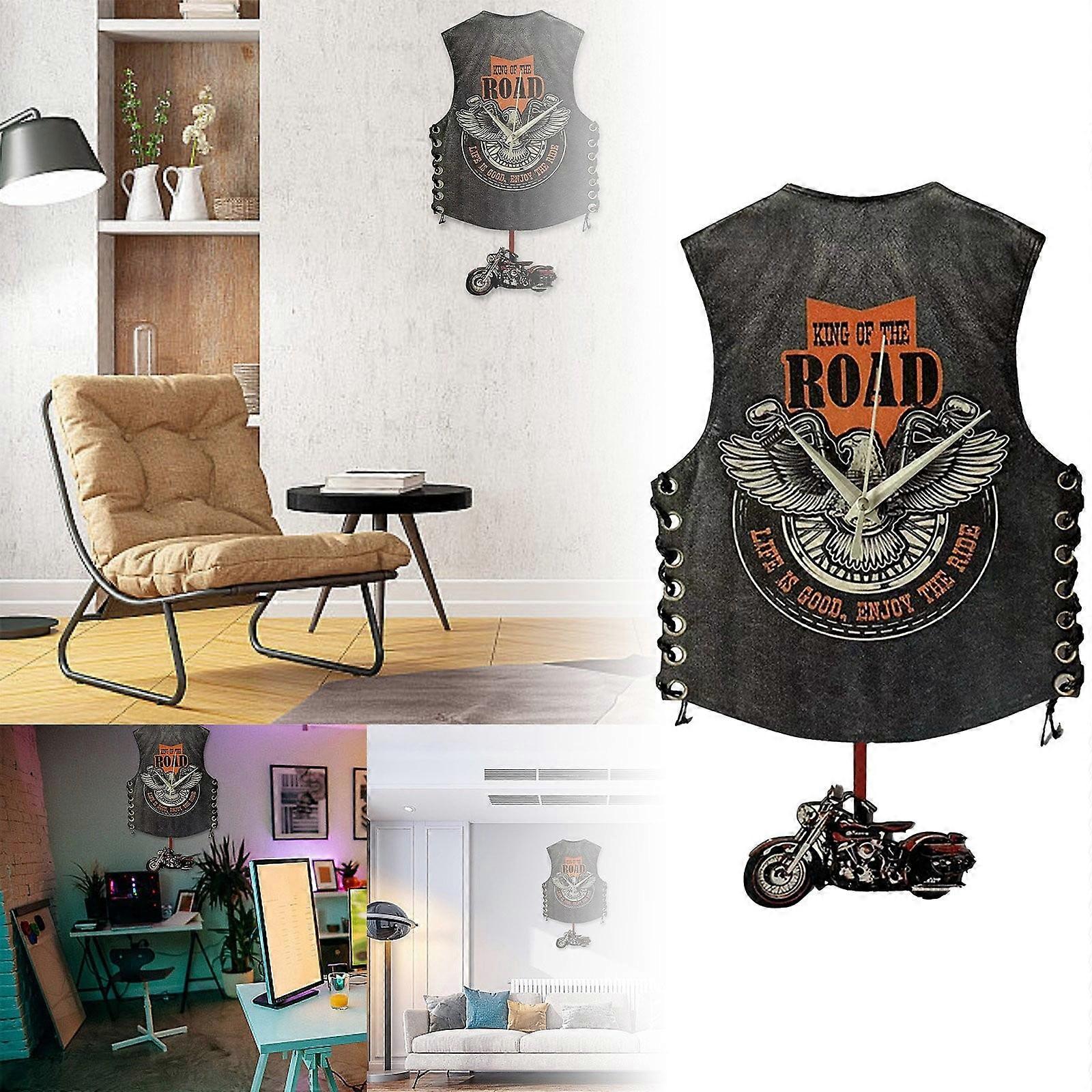 GARENAS Motorcycle Vest Wall Clock Silent Clock Creative Clock Border Motorcycle Swing Clock Decoration (Brown)