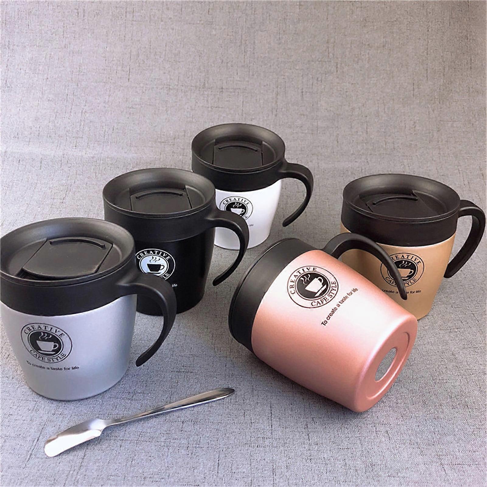 Hesroicy 1 Set 330ML Thermal Cup with Handle Double Wall Leak-proof Wide Mouth Rust-proof Anti-scalding Insulated Bottle for Office