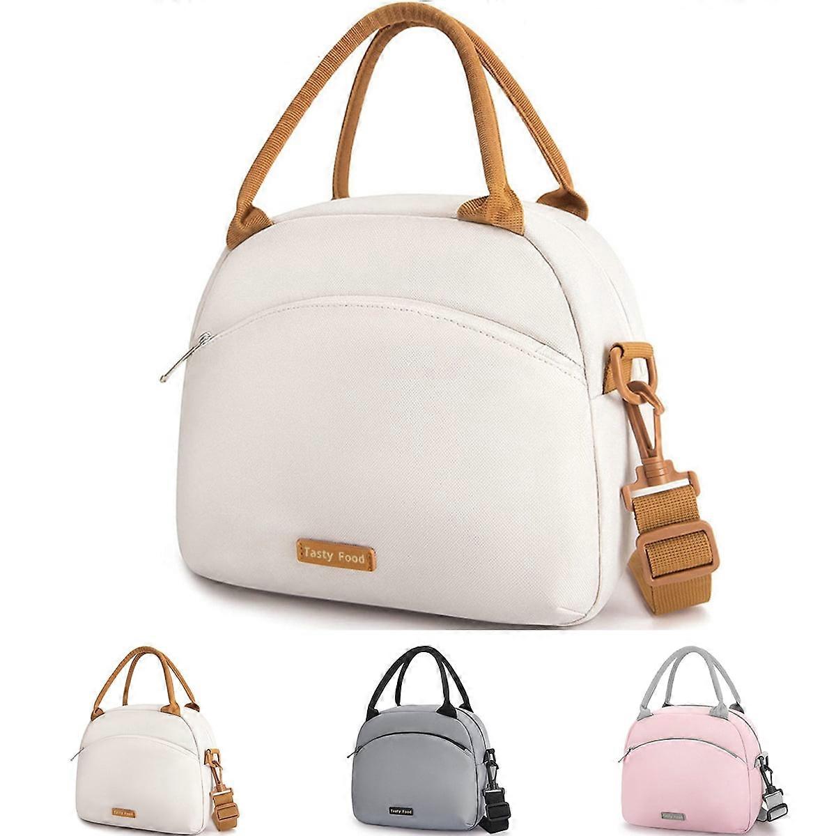 Portable Lunch Bag Large Capacity Reusable Leakproof Lunch Box Adjustable Shoulder Strap-Beige