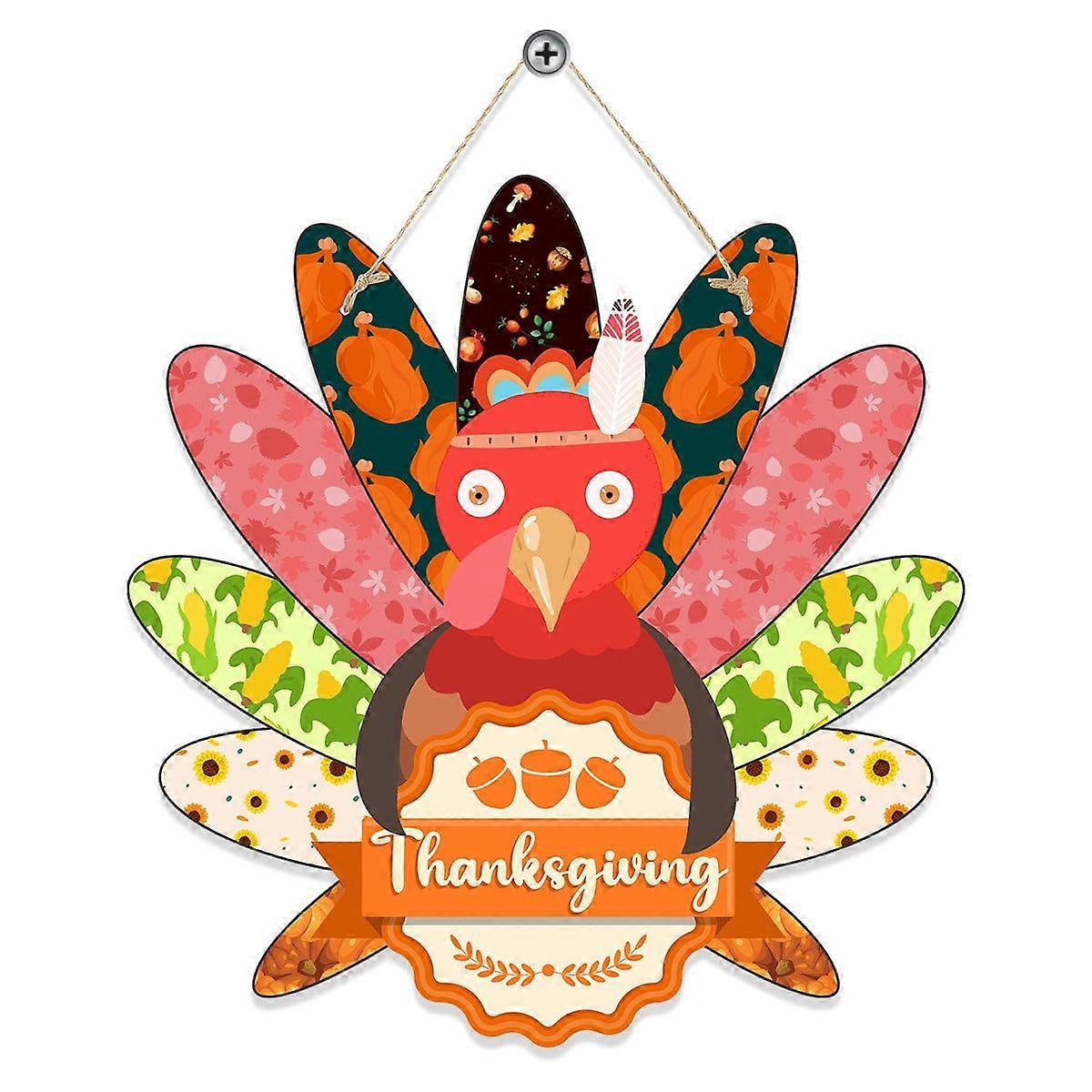 ajkijo Thanksgiving Door Decoration, Cute Turkey Wooden Sign, Fall Welcome Decor for Indoor Outdoor, Farmhouse Entryway, Compatible with Autumn