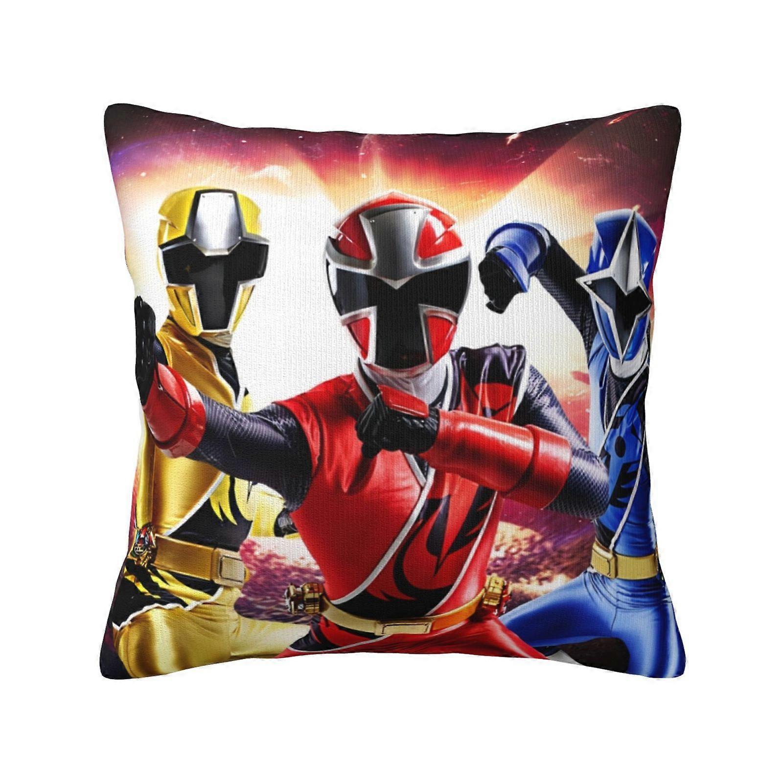 Power Rangers Plush Pillow Cases 18x18 inch, Square, Double-Sided, Soft Decor for Bed, Sofa, Car, Bedroom, White, No Insert