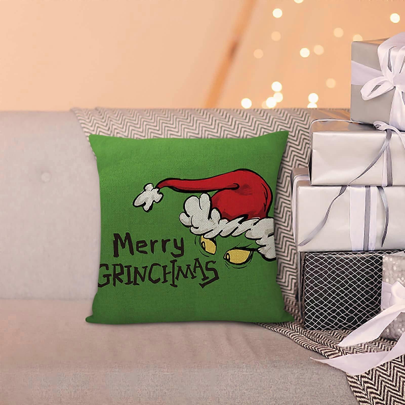 Gr1nch Decorations 18x18Inch Christmas Green-Monster Thief Throw Pillow Cover, Compatible with Grinch