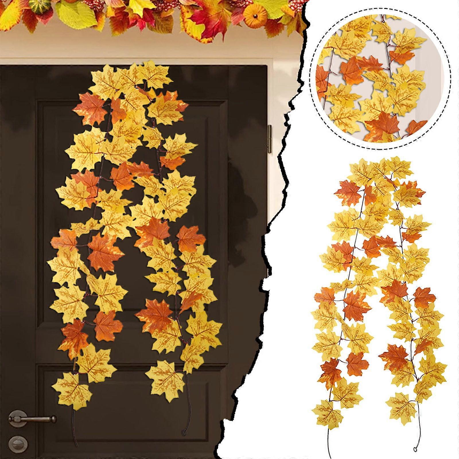 Coolmade Unlit Artificial Autumn Hanging Fall Maple Leaf Garlands Orange Thanksgiving Decorations For Home