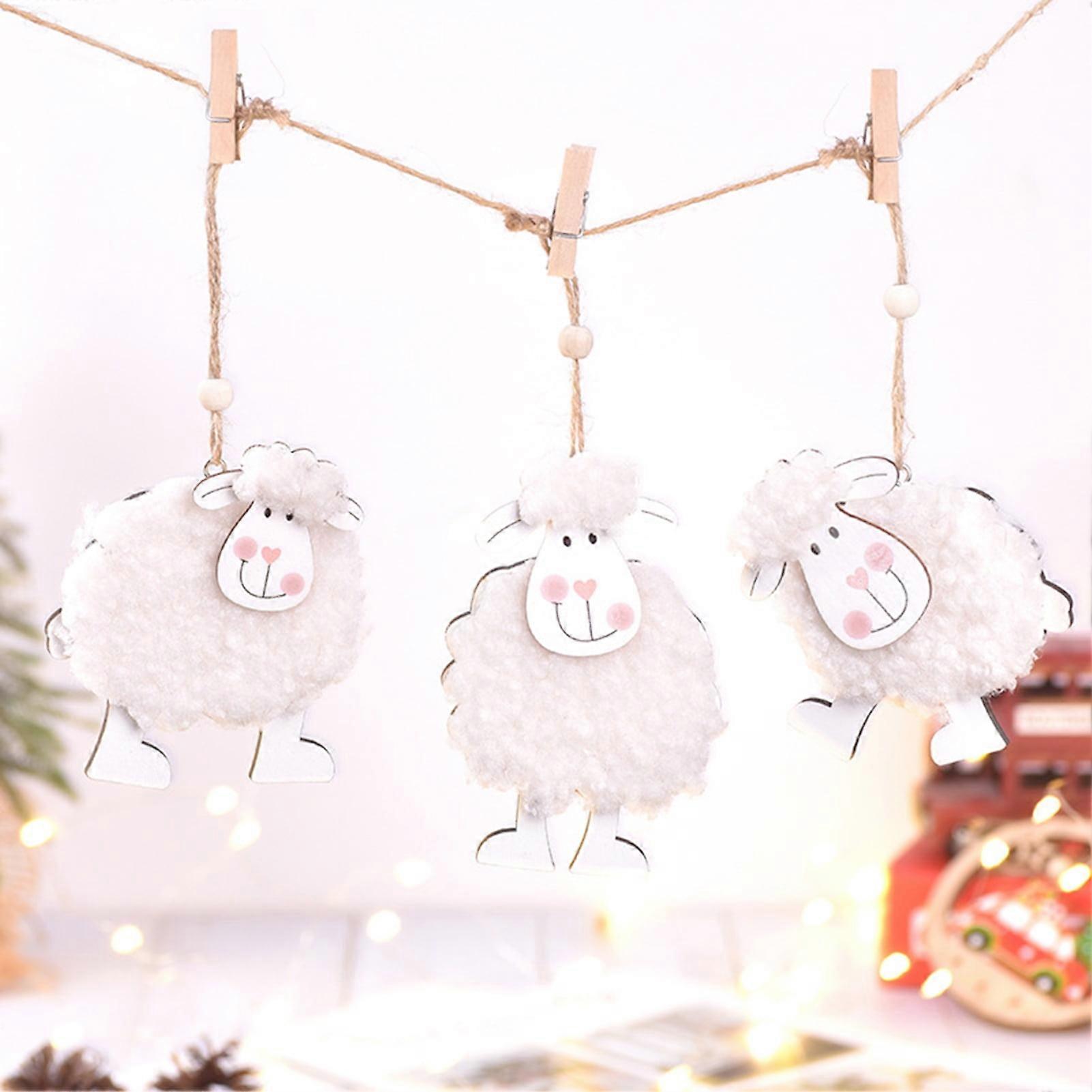SUSUchens Sheep Charm Cartoon Exquisite Stitching Decorative Festival Props Cotton Small Sheep Wooden Pendant for Easter Style A