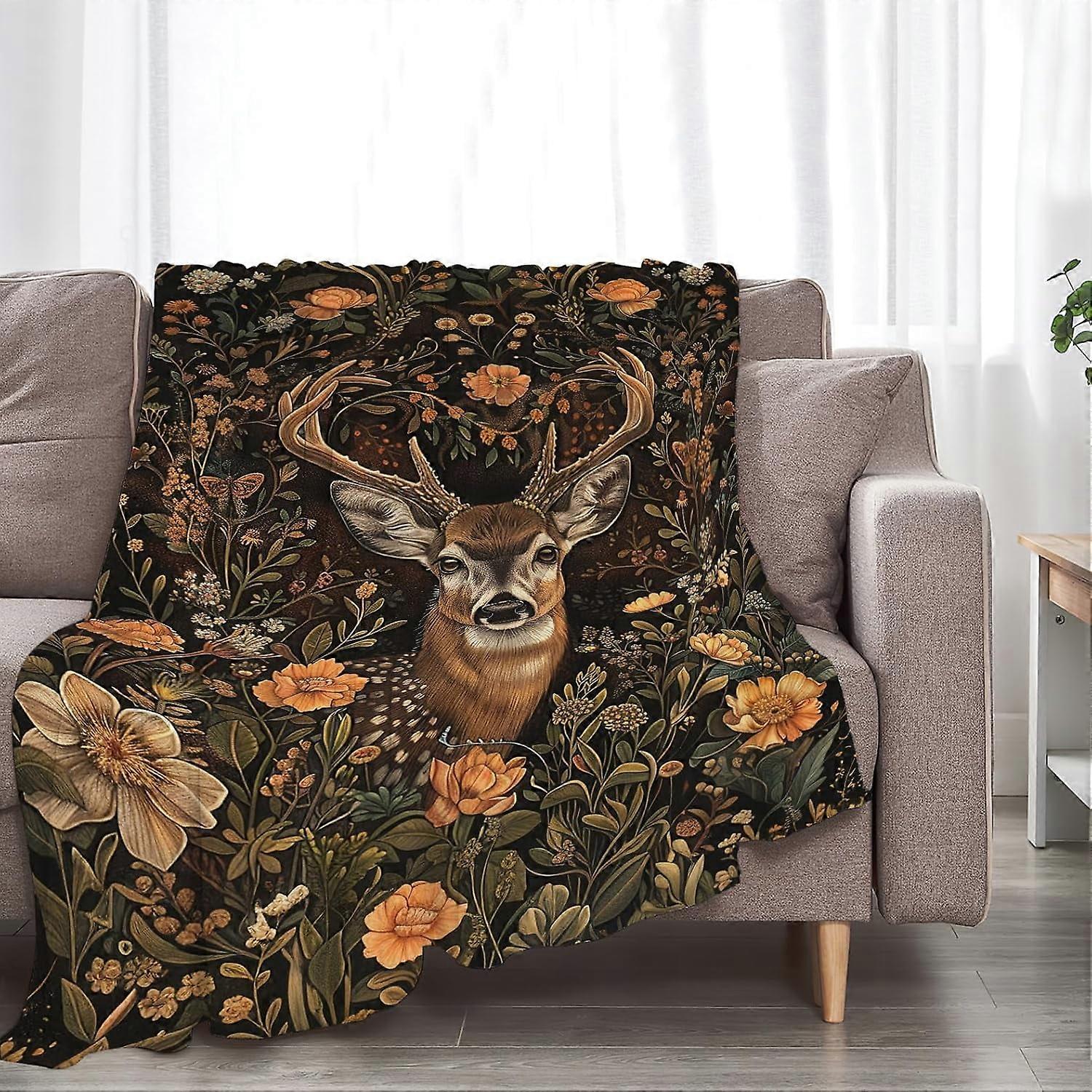 Vintage Deer Blanket - Soft Plush Flannel Throw for Bed, Sofa, Couch | 50"x60" Reindeer Gift for Women, Men, Teens
