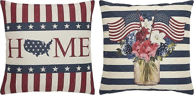 Patriotic Pillow Cover Set of 2, 16x16, USA Americana Decor for Independence Day & 4th of July (Inserts Not Included)