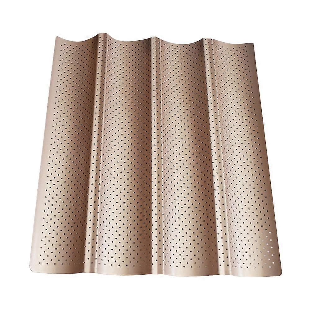 Pan Nonstick Perforated French Bread Pan 3 Wave Loaves Loaf Bake French Bread Pan for Oven ( Golden )