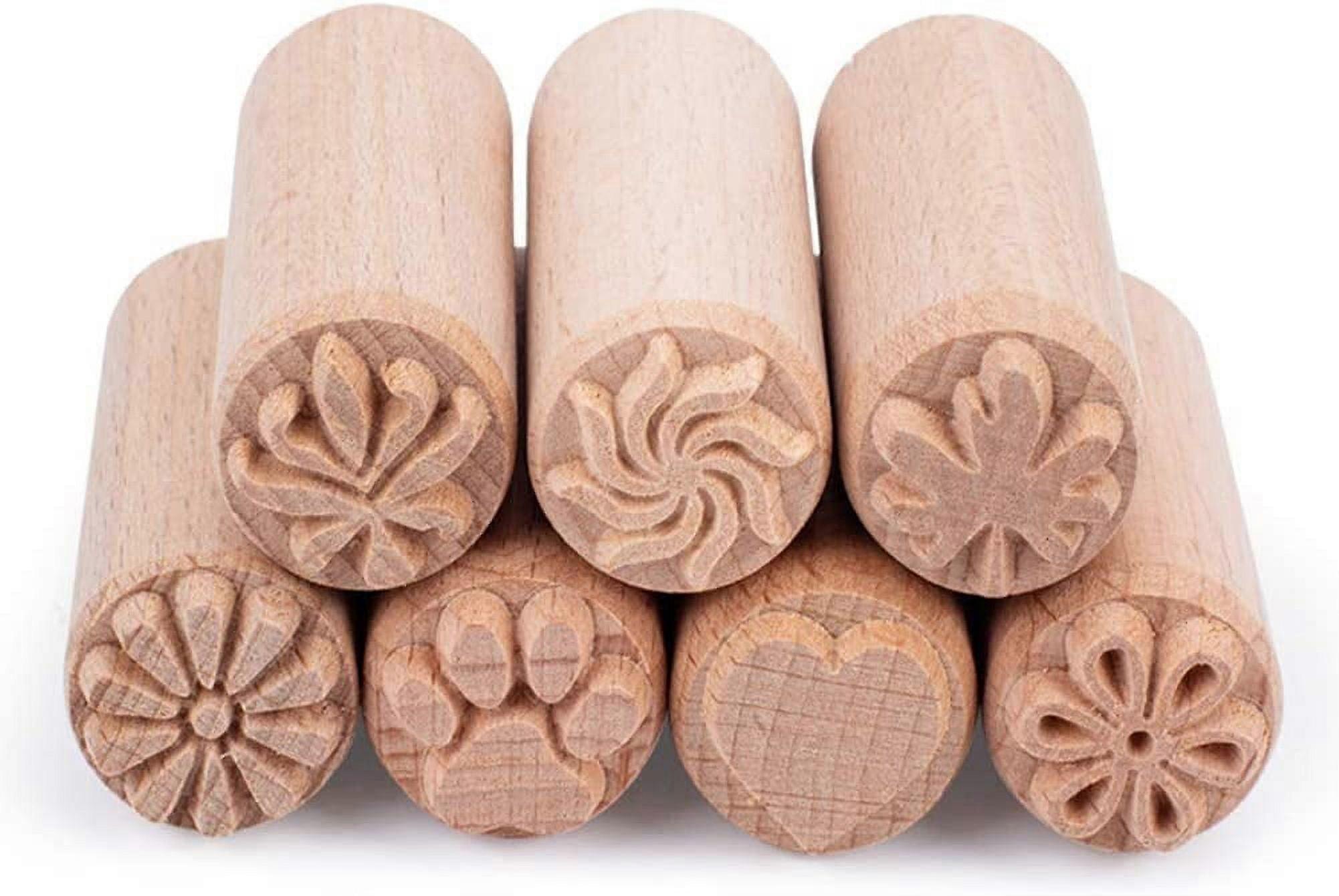 7PCS Wood Pottery Tools Stamps Column Wooden Stamps Natural Wood Stamps with Mixed Patterns for Clay Christmas Birthday Gift 50 x 20mm(2”x0.7”)