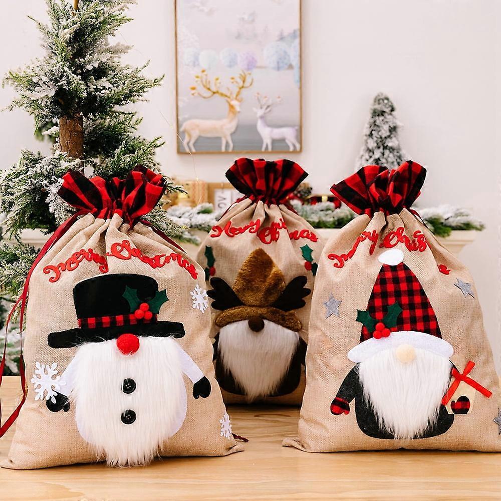 3 Pcs Burlap Santa Sack Bags, Large Christmas Cloth Bag with Drawstring, 14" X 22" Inch Reusable Xmas Present Storage Bag