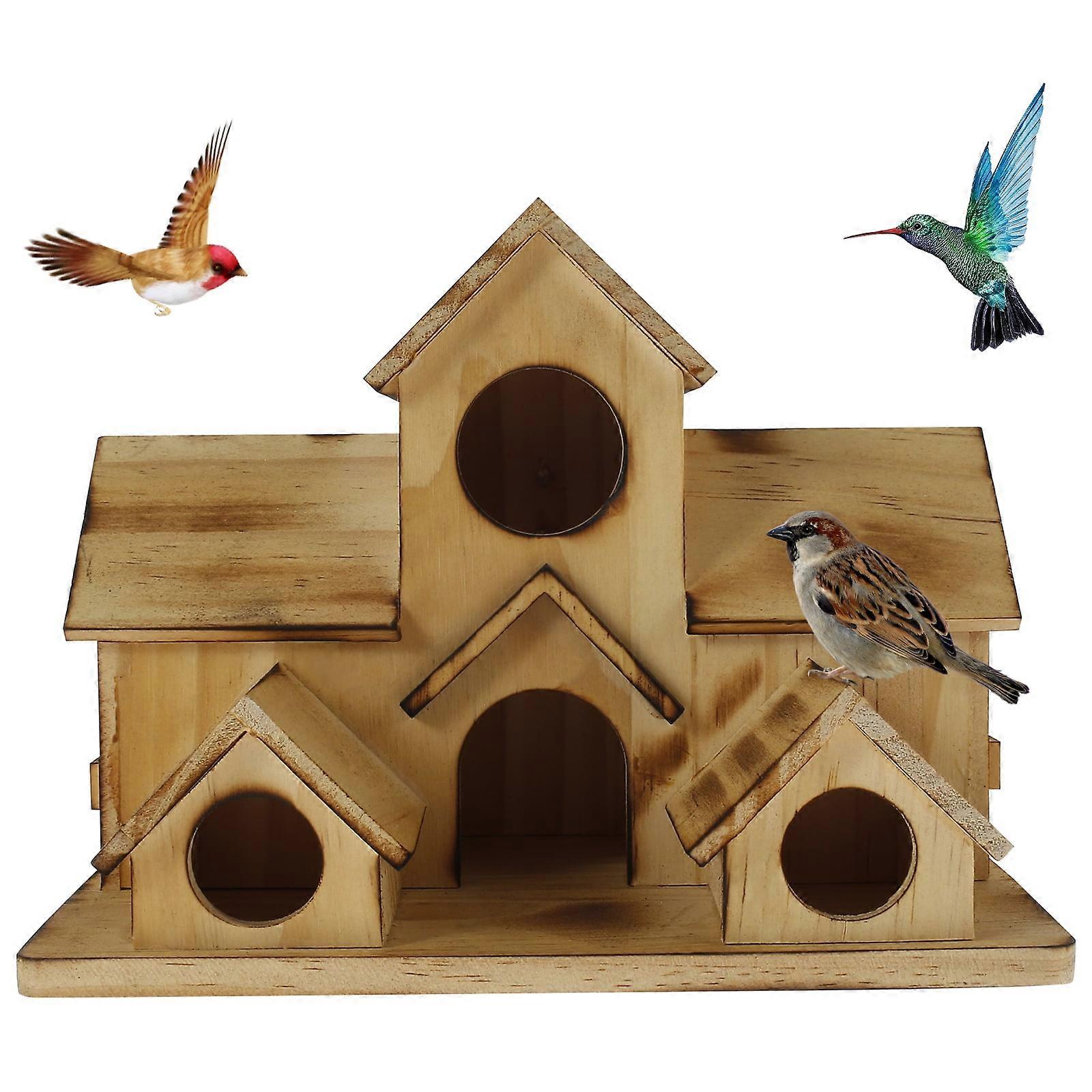 Nyidpsz 6 Holes Handmade Wooden Bird House, Large Durable Hanging Birdhouse Compatible with Hummingbird, Portable for Garden, Backyard, Patio Decor