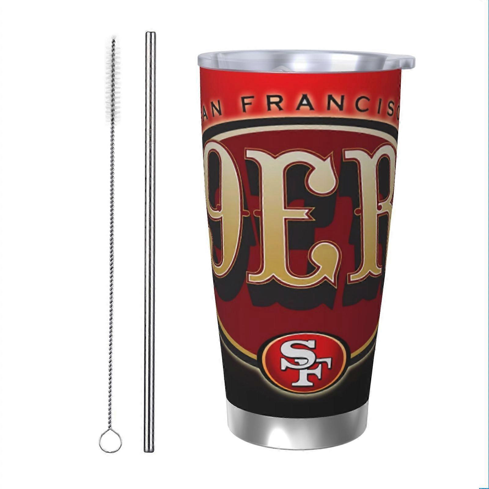 SF 49ers Football Team 20oz Stainless Steel Thermos Cup with Lid & Straw - Compatible with Car Cup Holders, Hot & Cold Drinks - Durable Sports Coffee