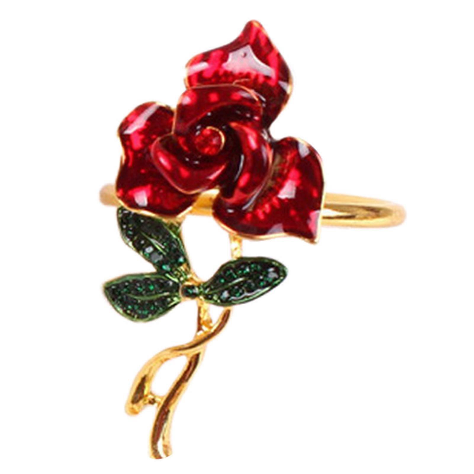 Napkin Holder Floral Design Romantic Decorative Alloy Happy Valentine's Day Rose Flower Serviette Ring Decor Home Decor-D