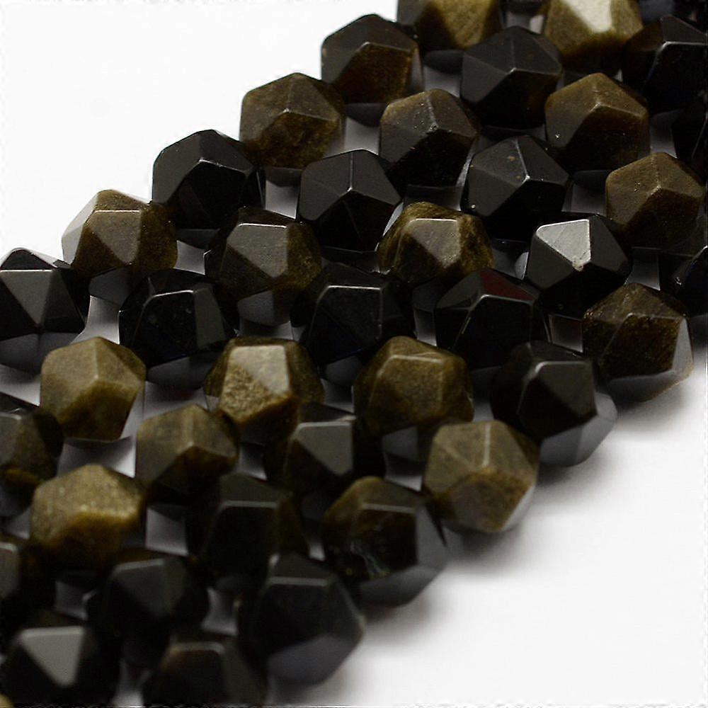 2Strand Natural Golden Sheen Obsidian Beads Strands Faceted Round 7~8mm Hole: 1mm 48pcs/strand 15.5 inch(39.5cm)