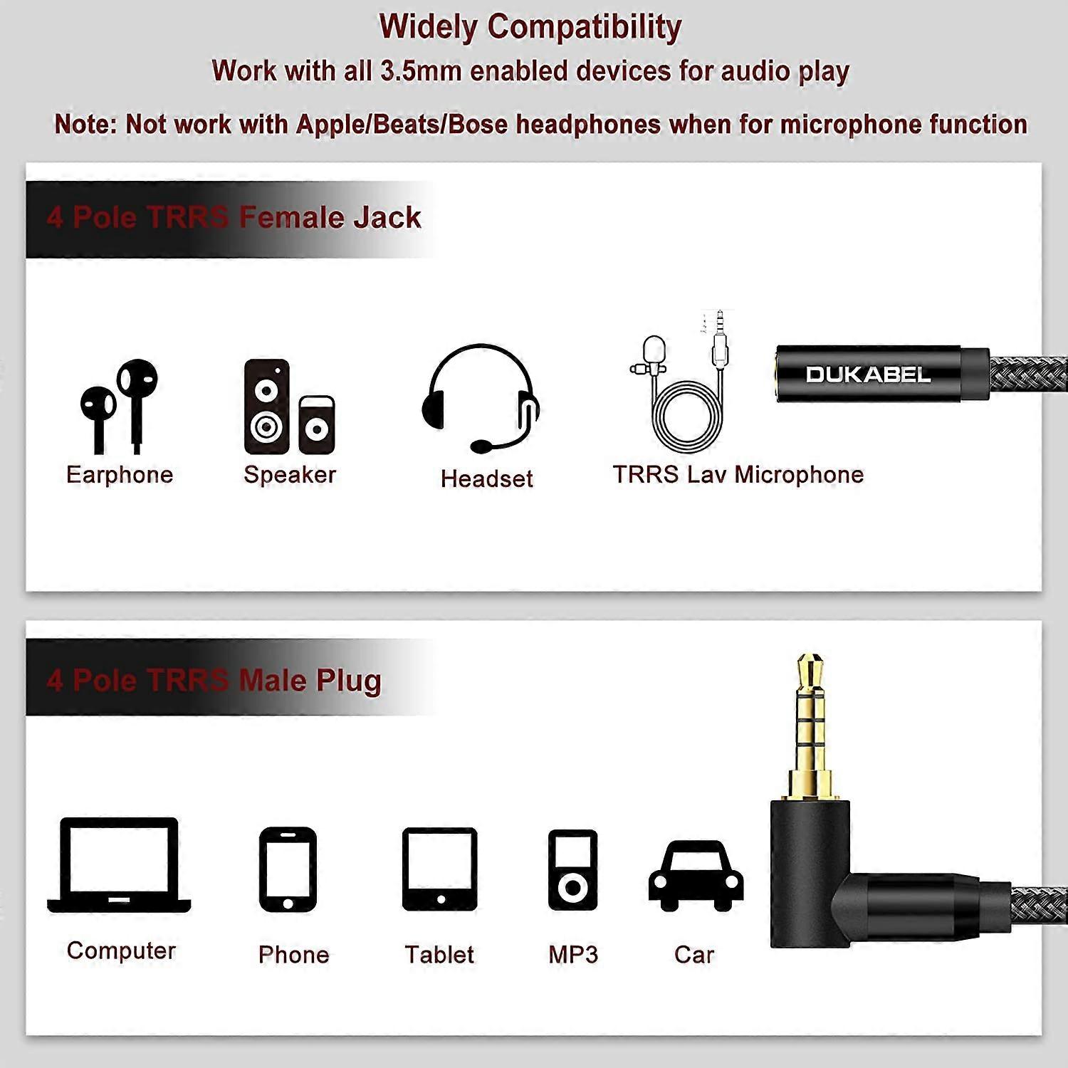 Headphone Extension Cords, 1.2 Meter(4 Feet) Right-Angle 3.5mm TRRS Earbuds Extender with Mic and Audio HiFi