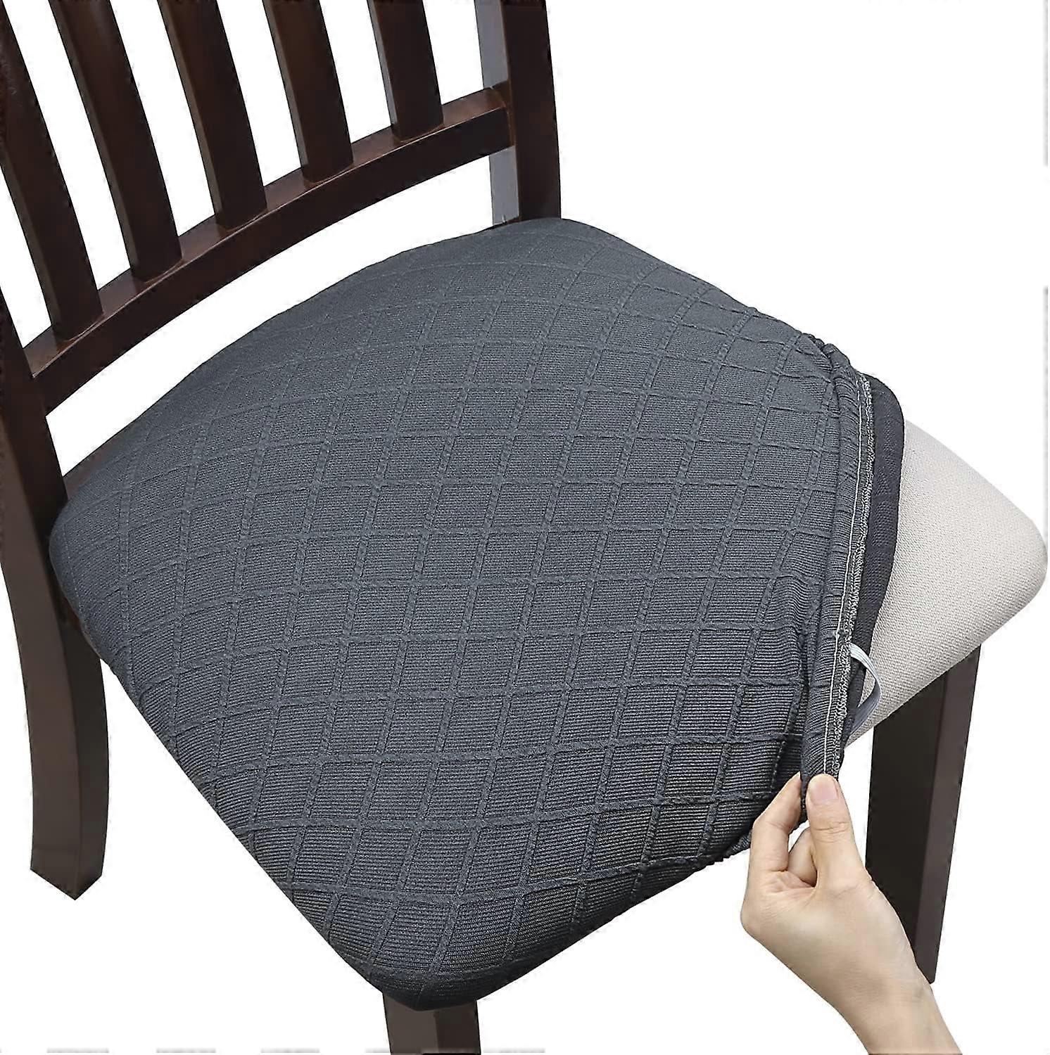 POWKOL Stretch Jacquard Chair Seat Covers Set of 2, Removable Washable Slipcovers for Dining Chairs, Anti-Dust Seat Cushion Covers (Gray)
