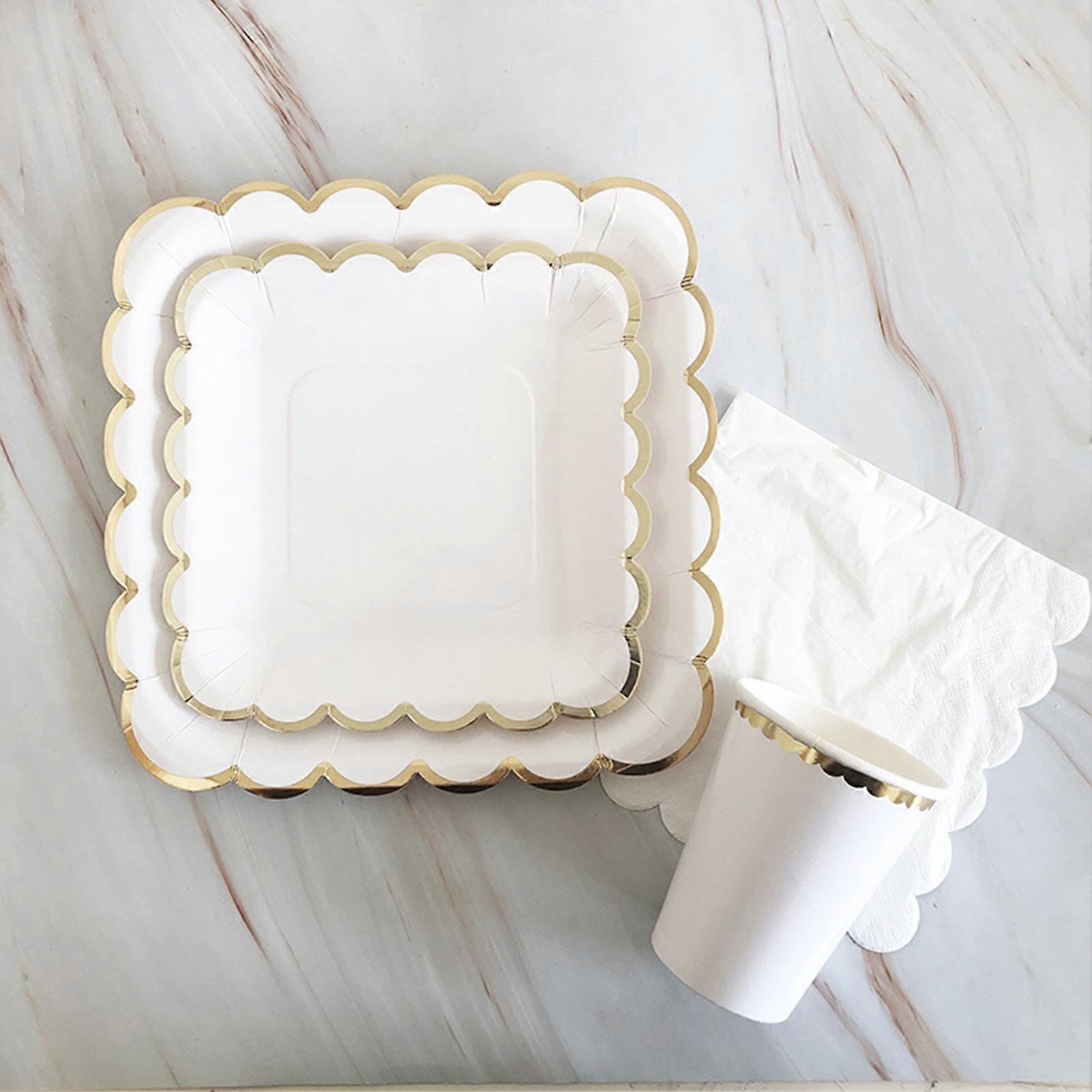 SUSUchens Disposable Party Tableware Set Elegant Convenient Time-Saving Gold Rimmed Paper Plates Kids Baby Shower Party Supplies Style C