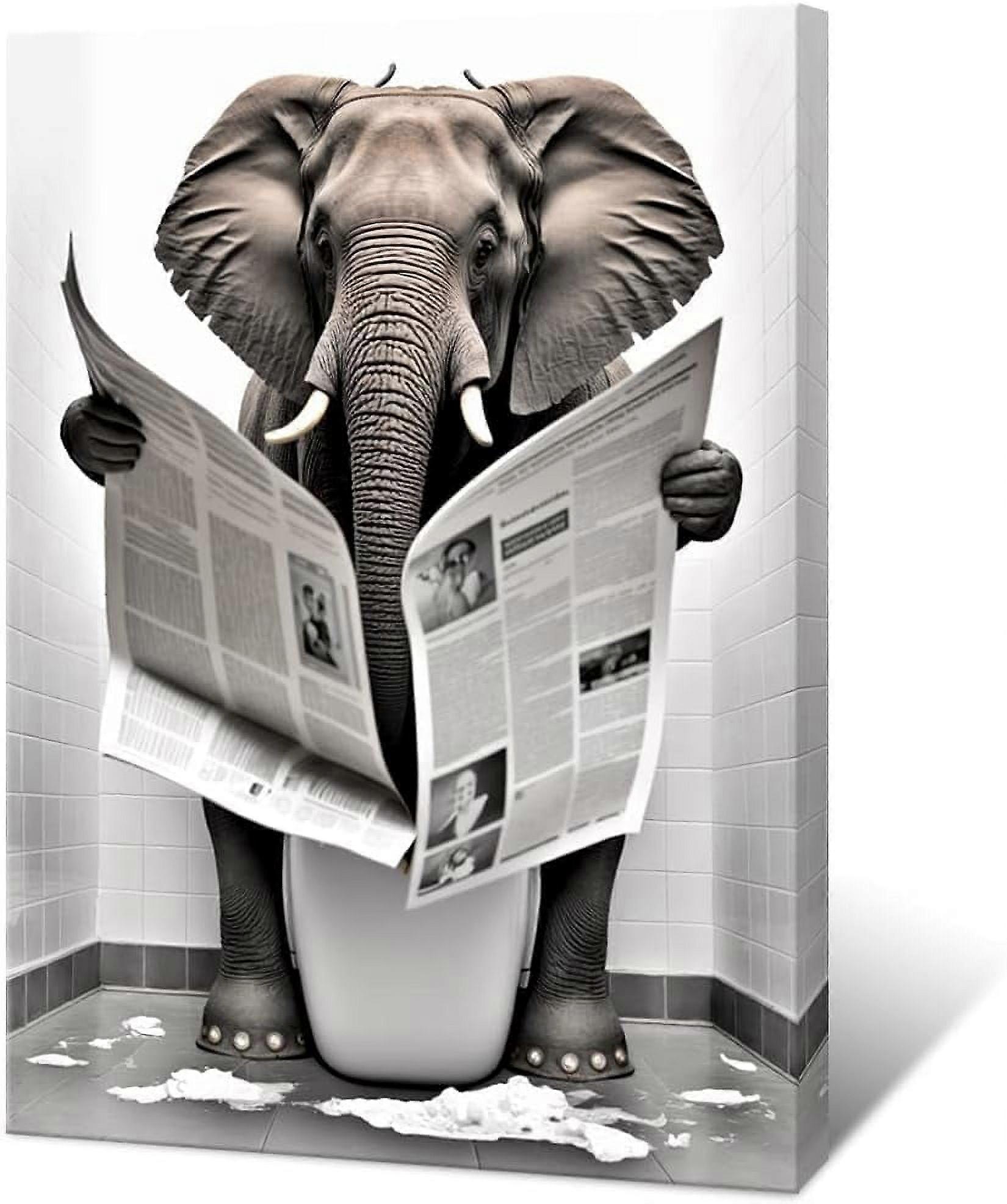 ASPORIC Funny Highland Cow Canvas Wall Art, Black & White Longhorns in Toilet Aesthetic Poster, Vintage Cute Animal Farmhouse Decor, 8x10 Inch