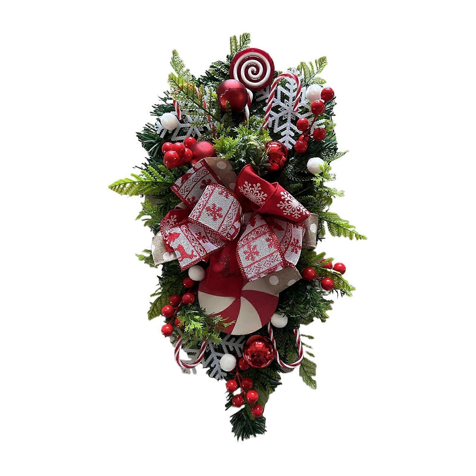 Red & White Candy Cane Wreath for Front Door, Teardrop Christmas Stairway Decor, Holiday Home Indoor Ornament