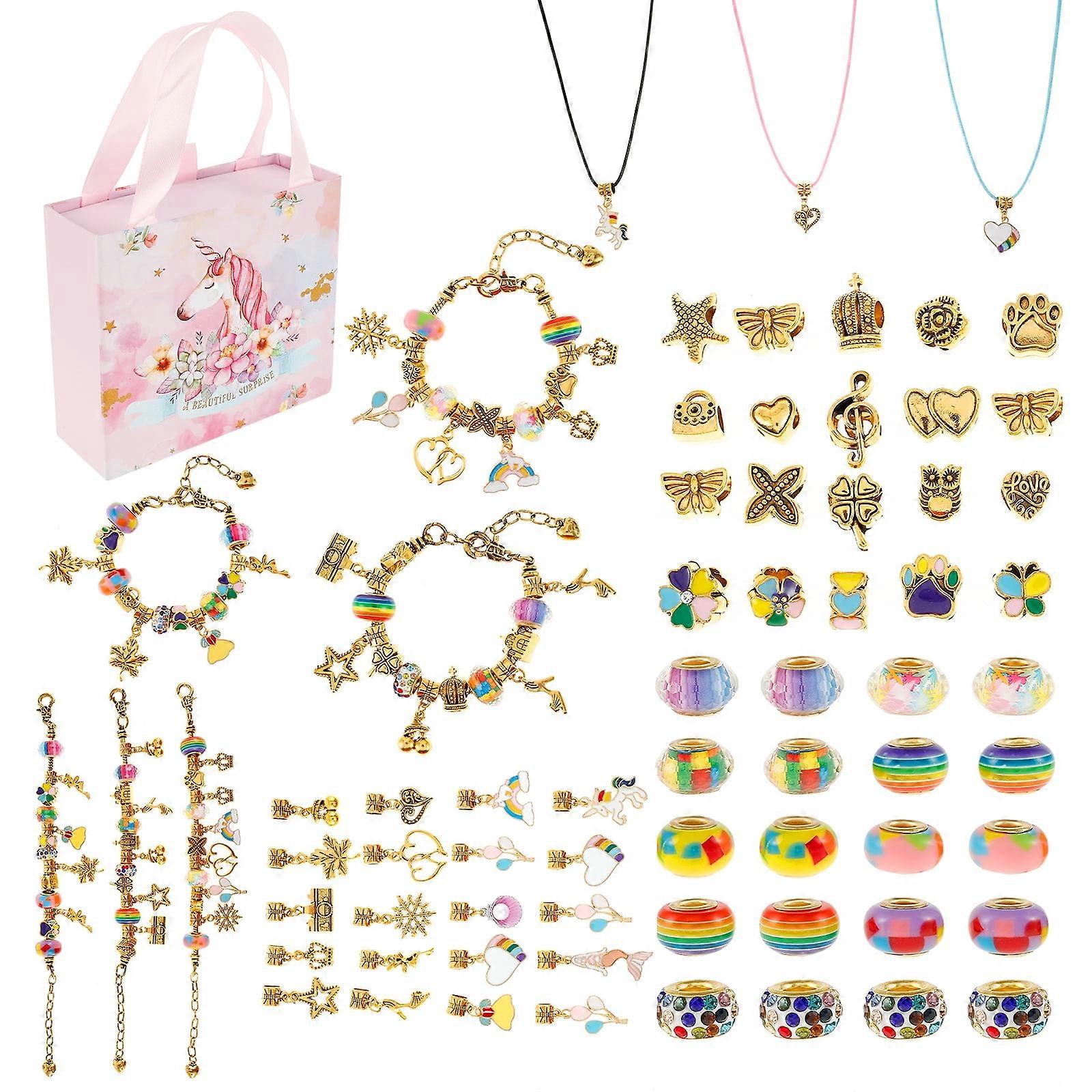 Qenwkxz 67Pcs Bracelet Making Kit with Bracelet Chains Rope Chains Beads Pendants DIY Jewellery Making Set