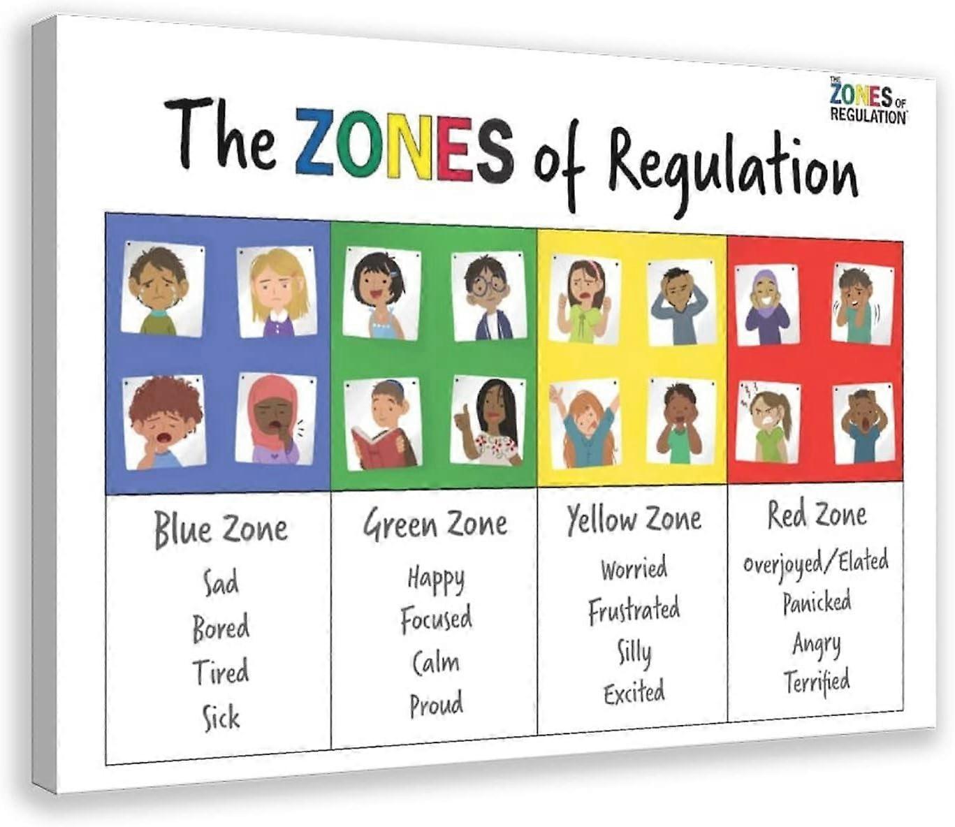 Emotional Management Zones of Regulation Educational Poster 8x12inch (20x30cm), Canvas Wall Art for Bedroom, Office Decor, Frame Style