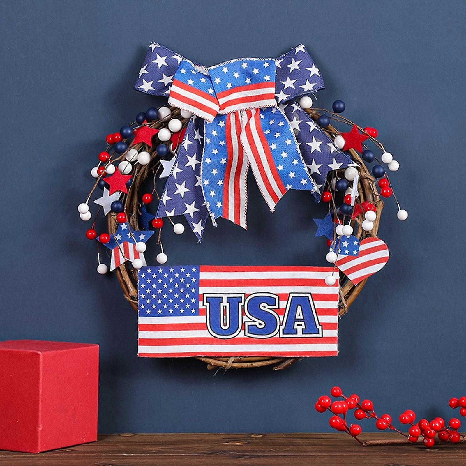 Gnobogi Floral Independence Day Bowknot Vintage Door Hanger Shopping Mall Window Scene Decoration on Clearance