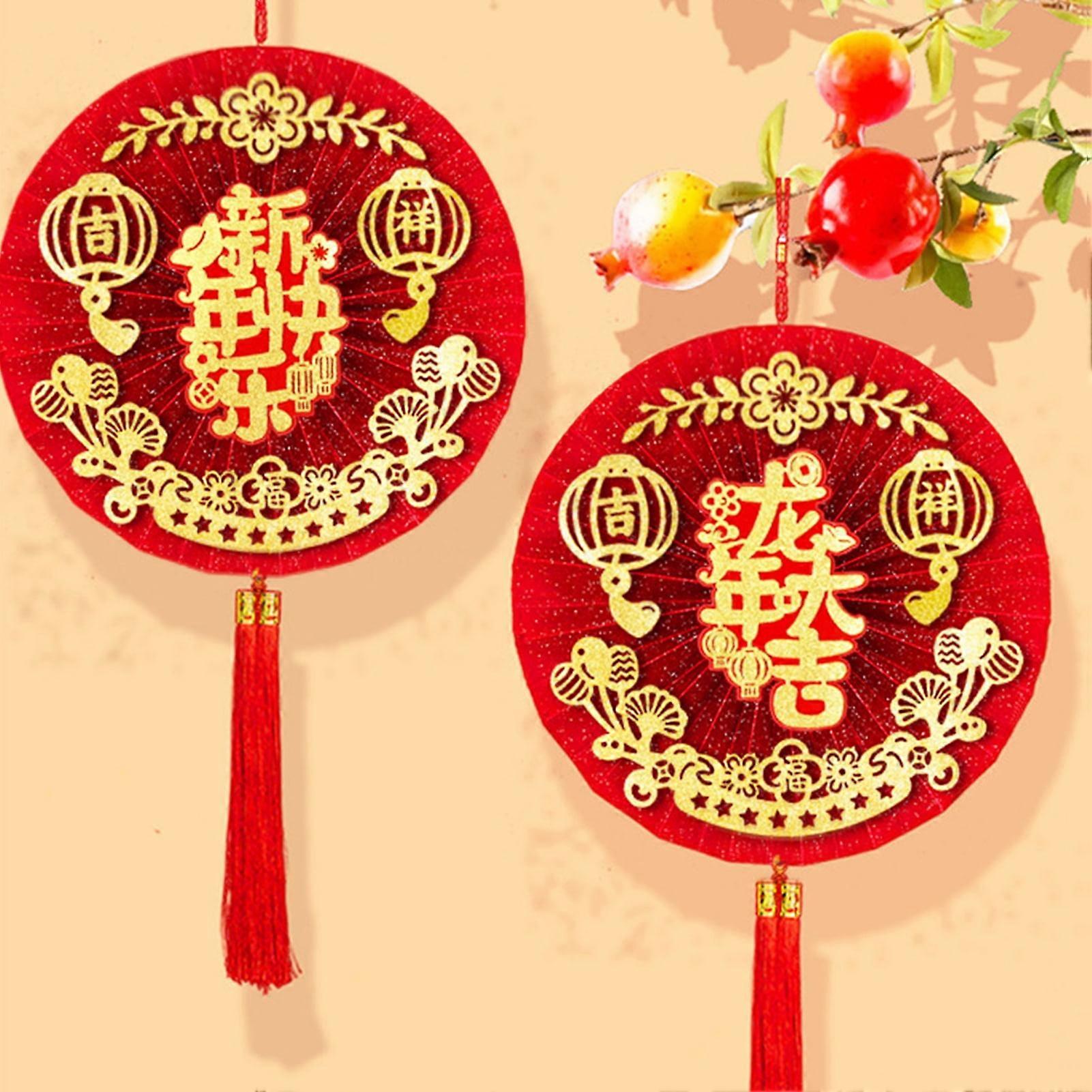 SUSUchens 2024 Paper Fan Pendant Blessing Chinese New Year Paper Fan Ornament with Tassel for Spring Festival Decoration Style C