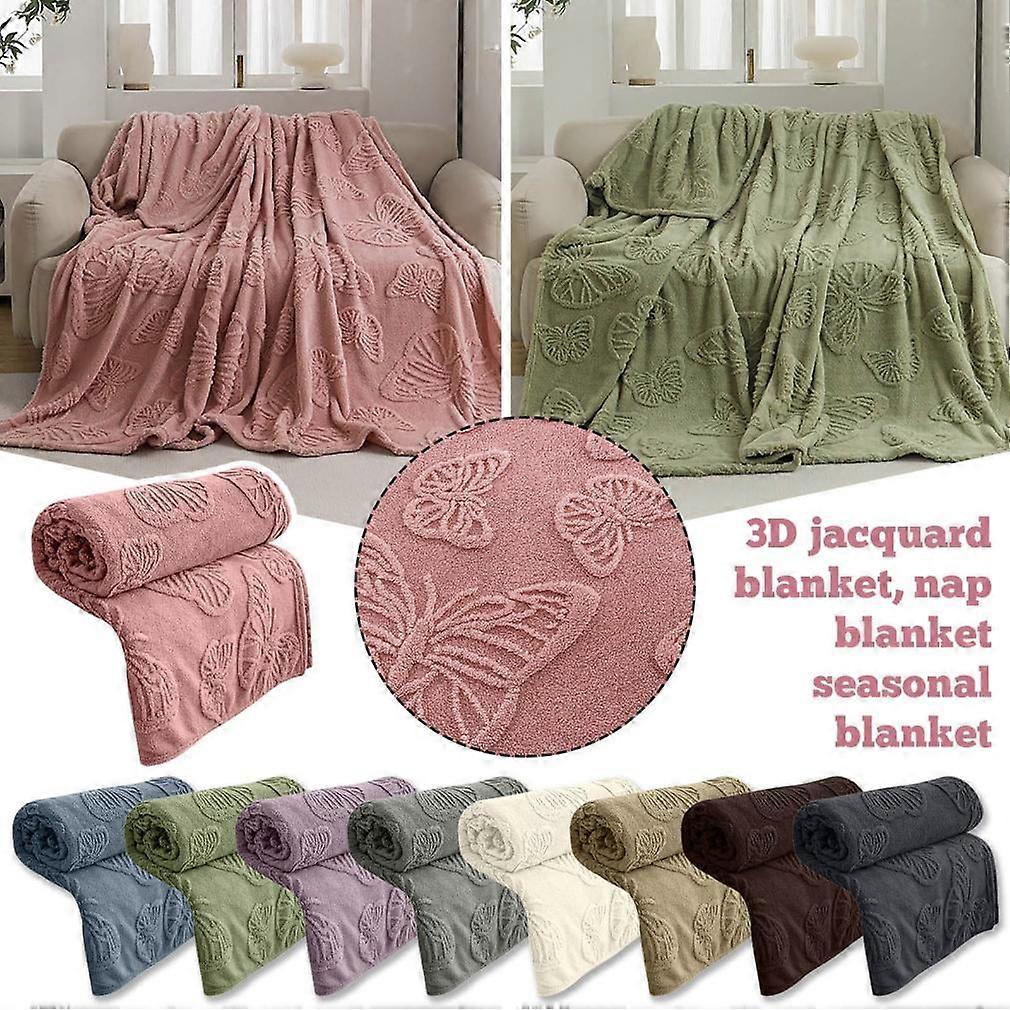 HKUKY Flannel Fleece Twin Blanket, Butterfly Jacquard, Soft Cozy Fluffy, Warm Lightweight, for Couch Sofa Bed, All Seasons 47.2"x78.7"